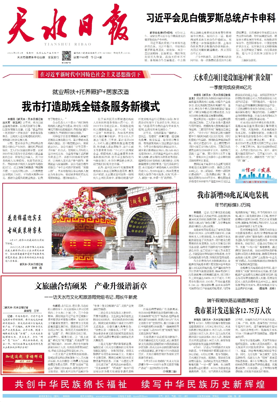 牛新虎:下一步,我们将认真贯彻落实习近平总书记在伏羲庙、麦积山石窟视察时的重要讲话重要指示精神,认真做好文化旅游这篇大文章,抓好《天水市文化旅游高质量发展三年攻坚行动方案》的落实,加快文旅强市建设步伐。