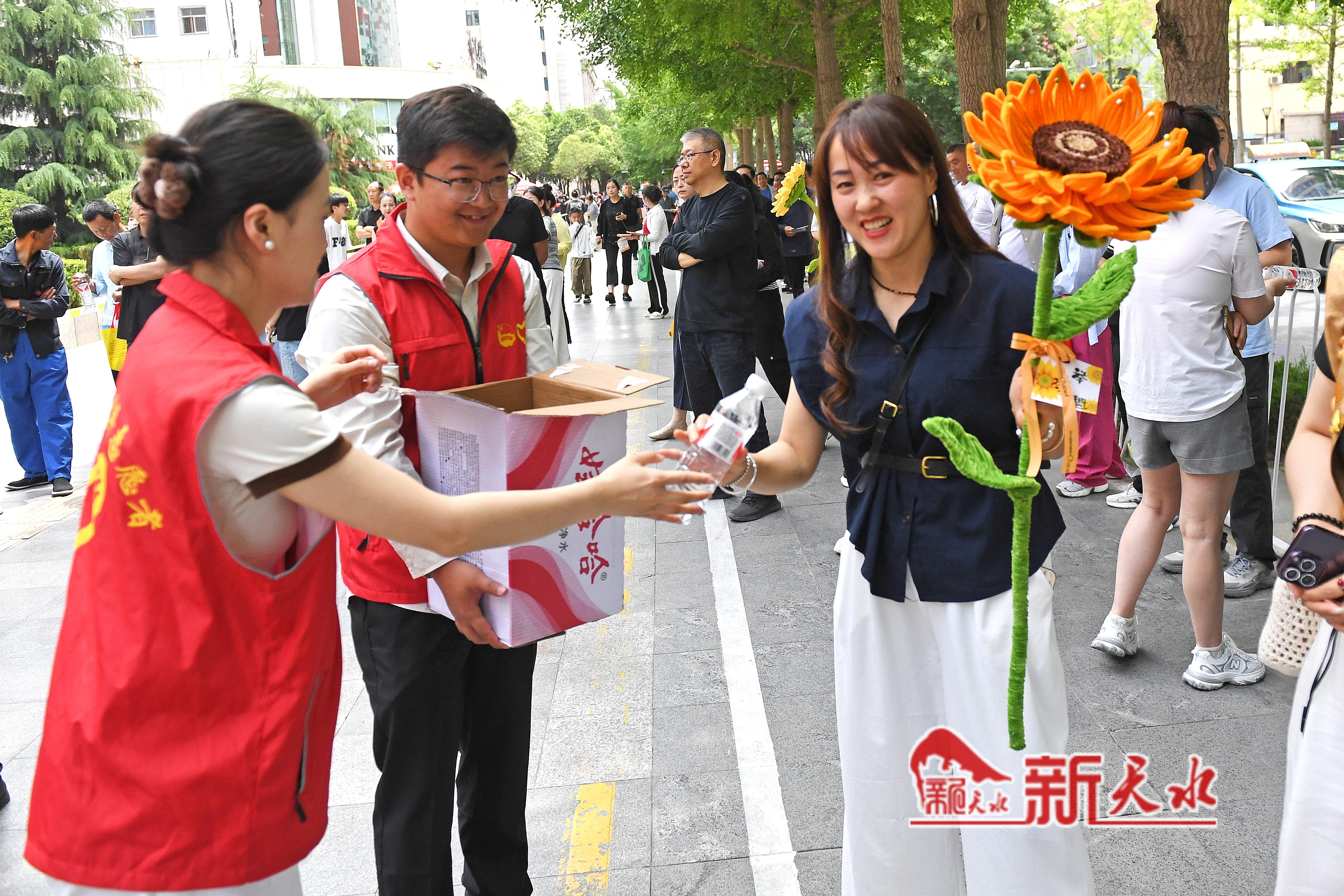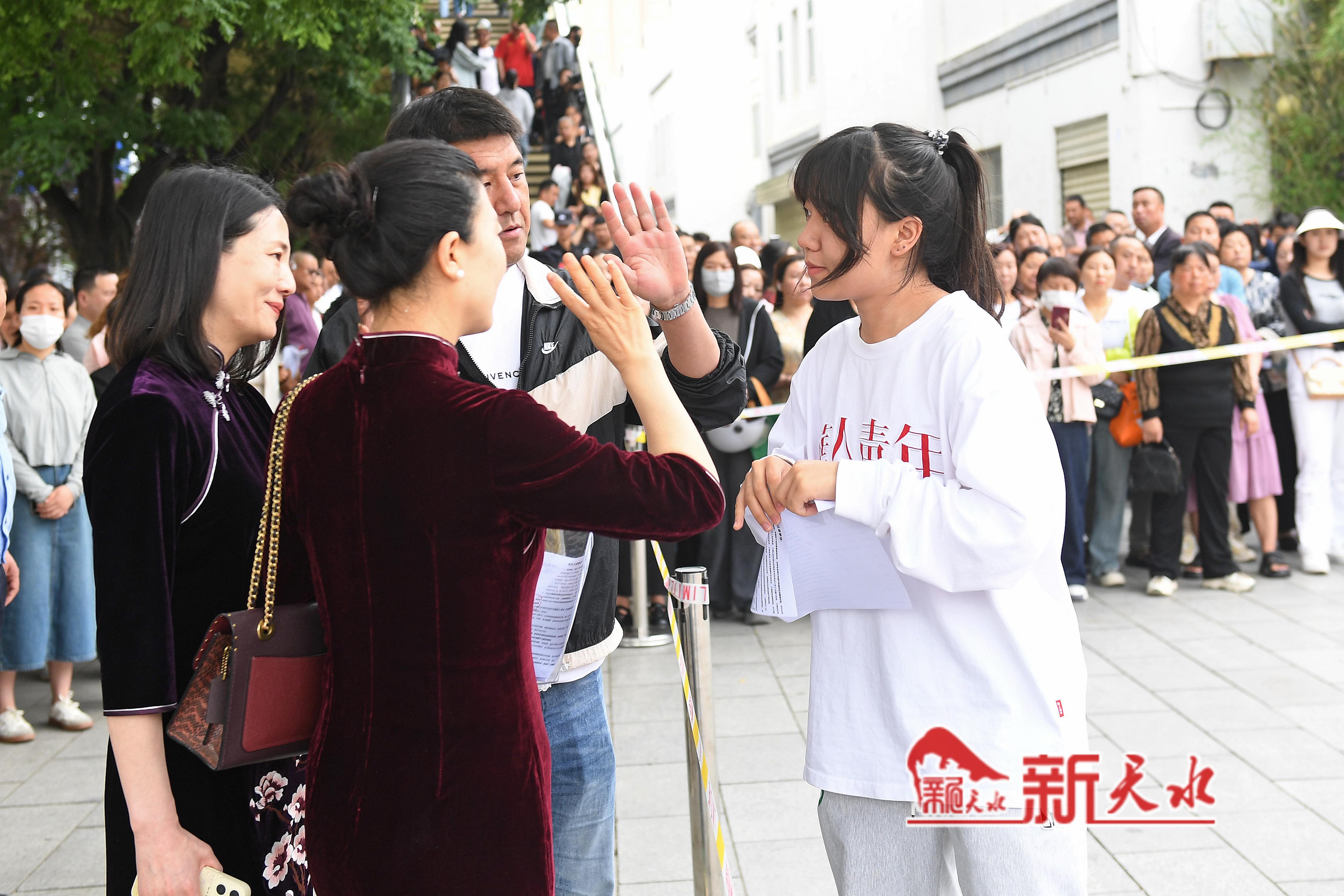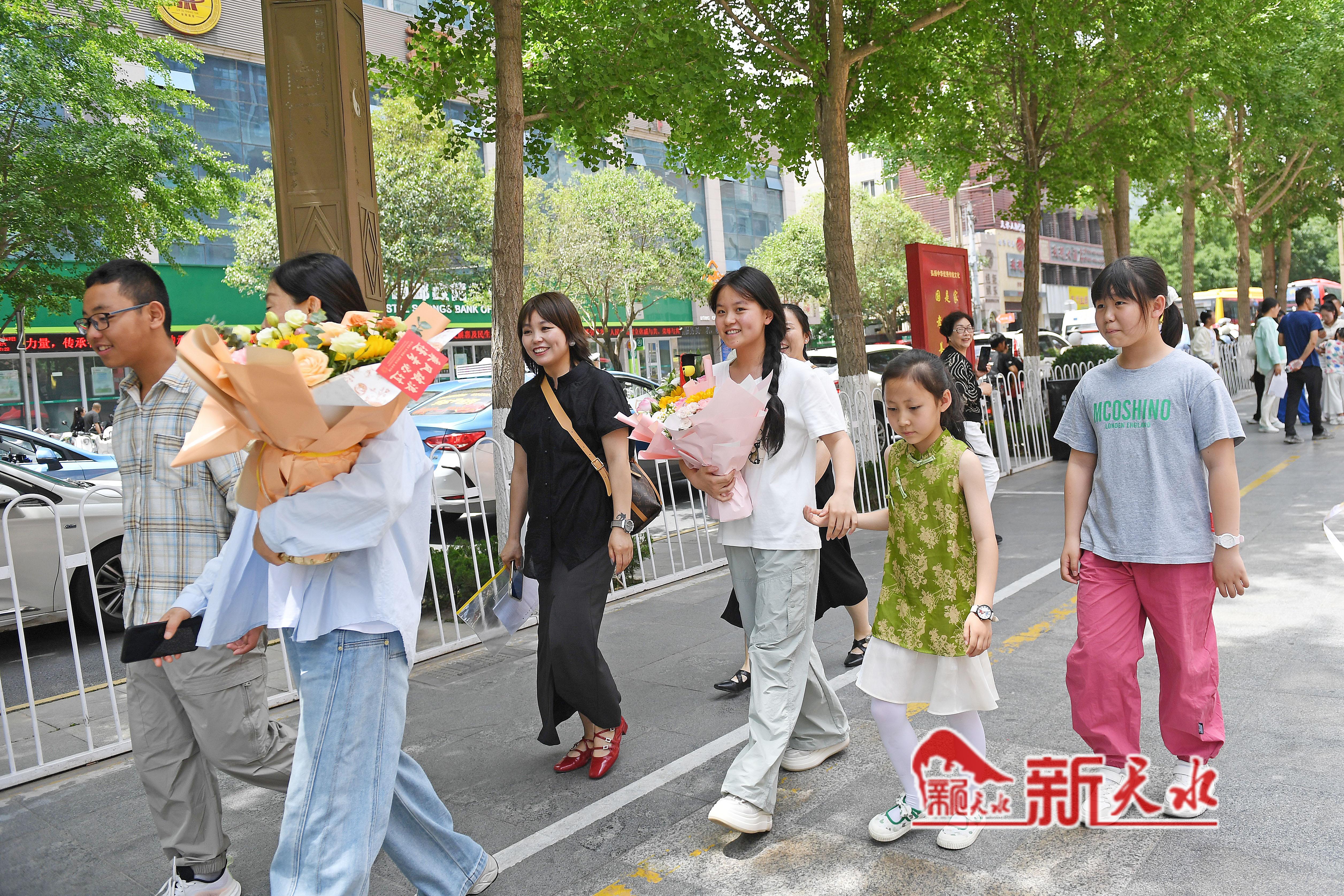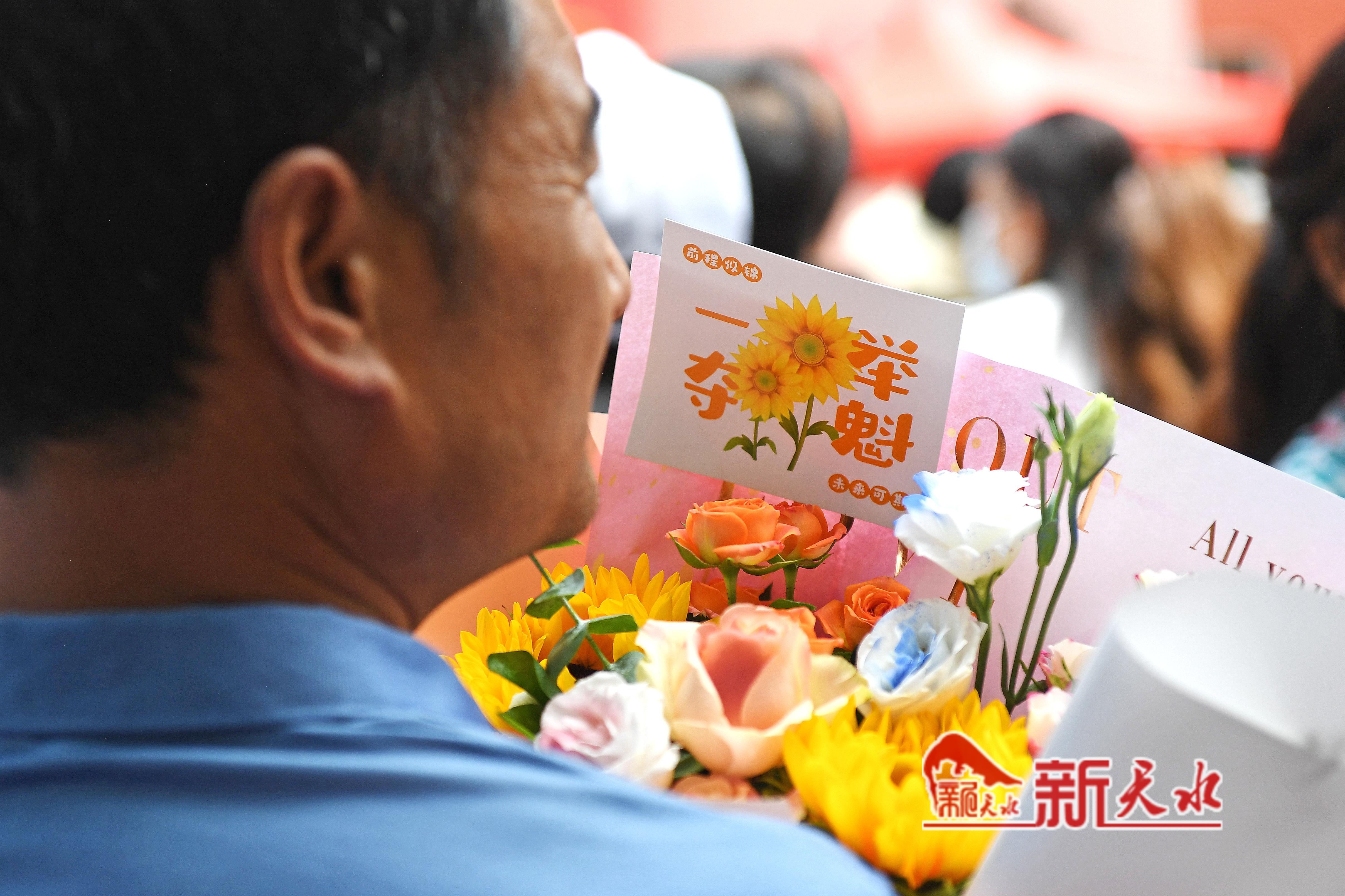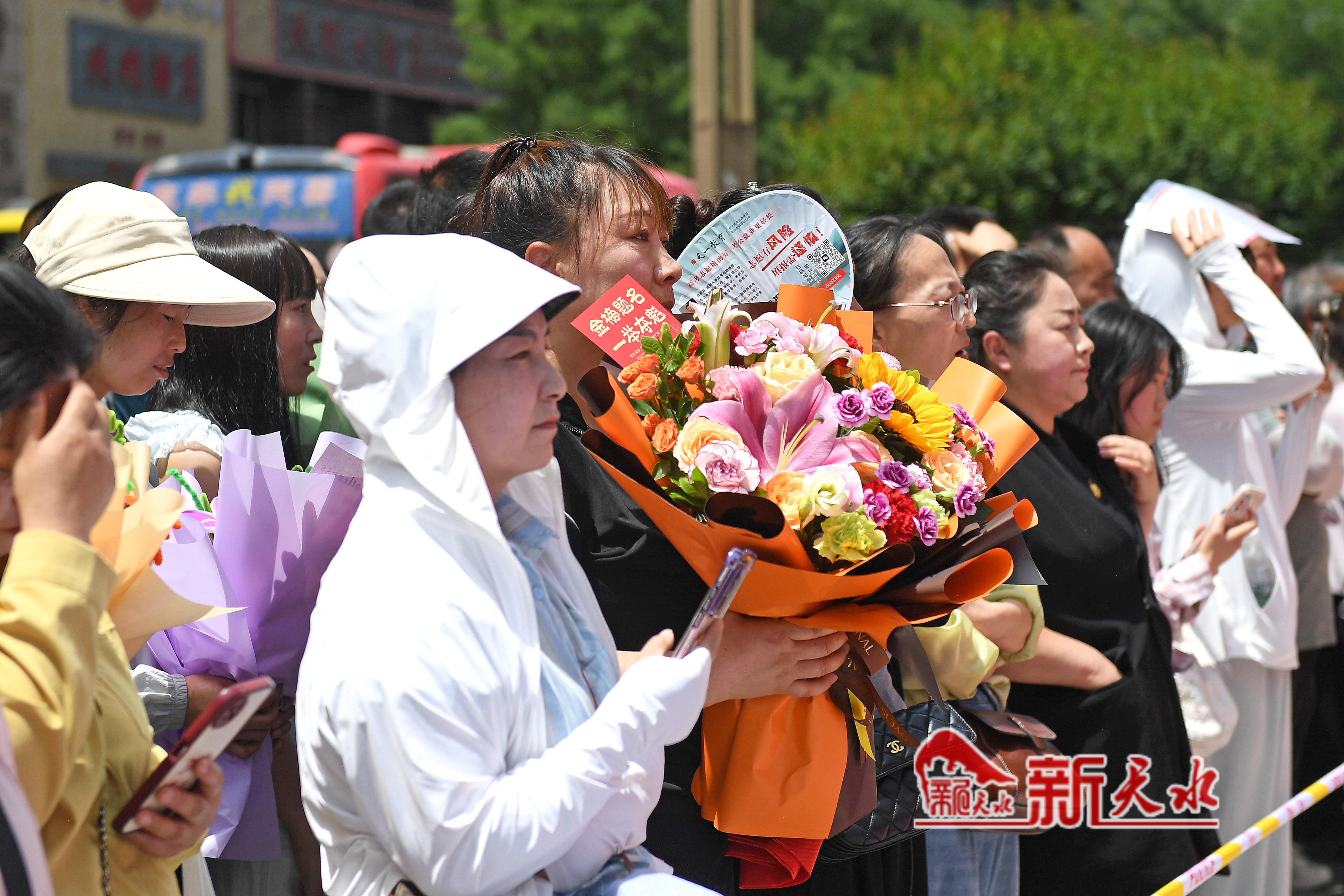 当天,在市一中、市五中和市一中秦州分校考点外,一些考生母亲特意穿了旗袍、手捧鲜花和向日葵等孩子出考场,祝愿考生旗开得胜、一举夺魁。