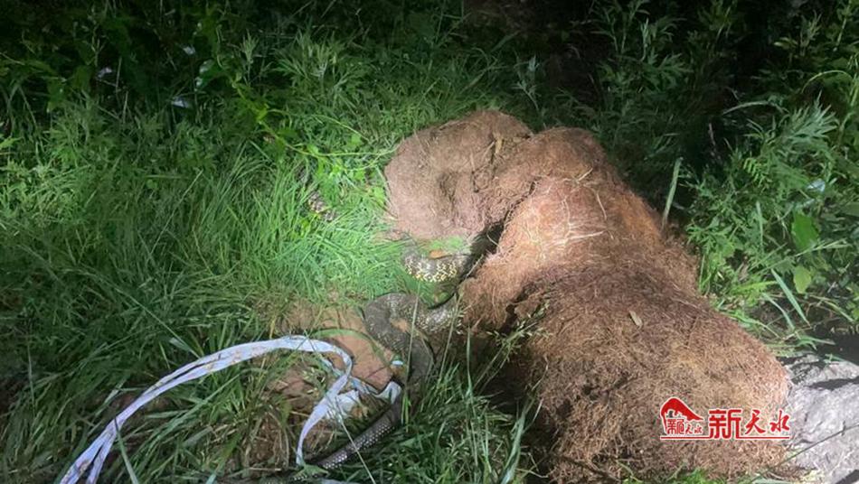 当日晚8时38分,天水市森林消防大队接到求助,称麦积区仙人崖景区附近一村民家中发现两条蛇,存在极大的安全隐患,需要消防救援人员帮忙抓捕。接到求助后,该大队消防人员携带专业捕蛇装备赶赴现场。消防人员抵达现场后,发现两条蛇盘踞在袋子下方,头部微抬、吐信呲牙,呈现出攻击姿态。经现场辨认,确认两条蛇均为黄黑相间的菜花蛇,其中一条长达2.2米左右,另一条长达1.8米左右。考虑到菜花蛇具有较强的攻击性且体型较大、数量较多,消防人员先疏散村民,随后两名队员手持长柄捕蛇器,从袋子两侧接近,精准卡住蛇的颈部。另一条蛇因受惊窜至麦垛深处企图逃跑,指战员眼疾手快利用捕蛇器将其控制,徒手抓蛇放入编织袋中。考虑到可能还有其他蛇,为避免群众受到伤害,消防人员仔细检查周围环境,确认没有蛇类后才离开现场。“非常感谢你们解除了我们的安全隐患,如果咬到人的话,后果不堪设想。”村民激动地说道。据该村民描述,这已经是第二次在家中发现蛇出没,因担心蛇进入居住区域便寻求消防员的帮助。
