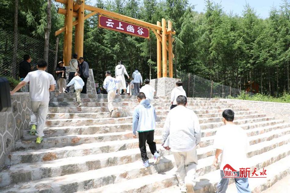 在海拔1600米的店子村,“云上幽谷”景区成为新晋网红打卡地,游客或拍摄云海奇观,或体验研学项目,孩子们在自然探索区玩得不亦乐乎。作为古坡镇今年重点打造的旅游新名片,“云上幽谷”项目整合了高山草甸、百年古树等自然资源,修建了蹦蹦床、空中云梯、天幕露营、林下商店等设施。“现在来古坡多了云上幽谷,这里既能研学又能避暑,周末一家人来游玩、露营、品尝当地美食,感觉挺不错的。”天水游客杜宝萍笑着说。