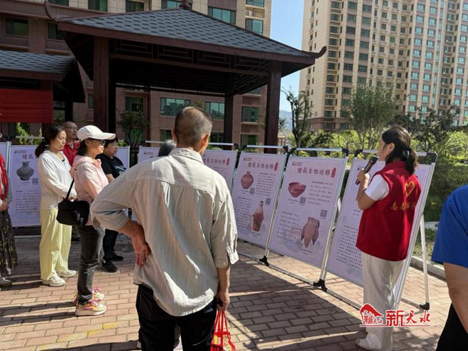 在社区文化长廊,一块块图文并茂的展板有序陈列,甘谷县博物馆精选的珍贵文物图片涵盖多个门类,史前陶器古朴厚重、青铜器造型精美、秦文化器物彰显地域特色、汉代画像砖生动再现历史场景,每张图片旁,都配有详细的文字说明,对文物名称、年代、出土地点,以及背后承载的历史故事、文化价值进行介绍。