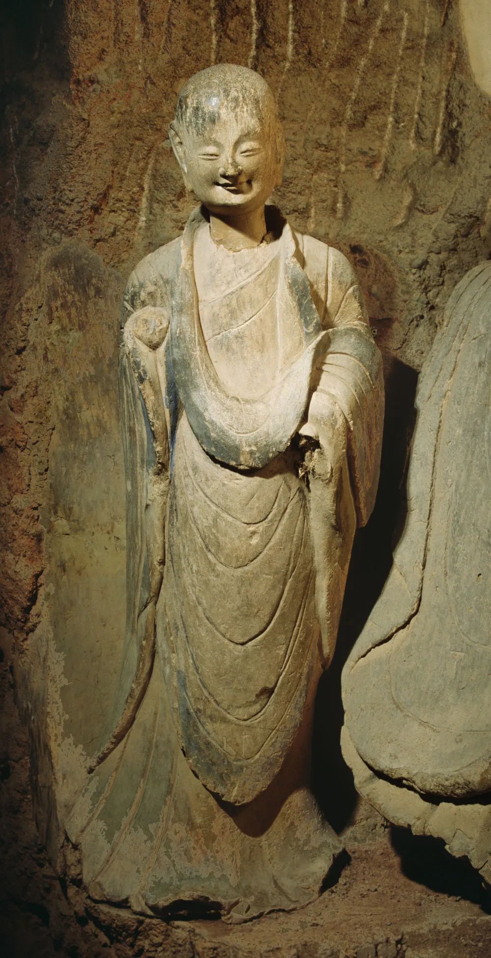 图为麦积山石窟第133窟小沙弥立像,因微笑迷人,被誉为“东方微笑”。图源:麦积山石窟艺术研究所