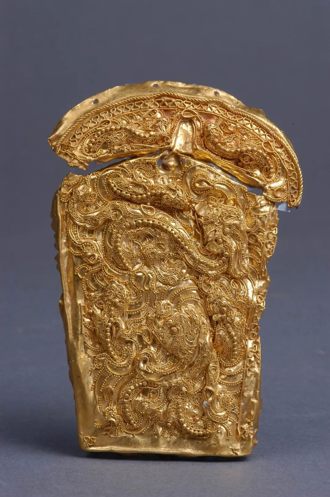 图为东汉·掐丝焊珠蟠螭纹金带扣。图源:天水市博物馆