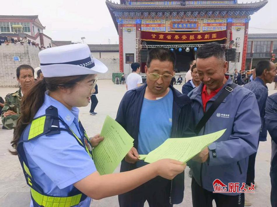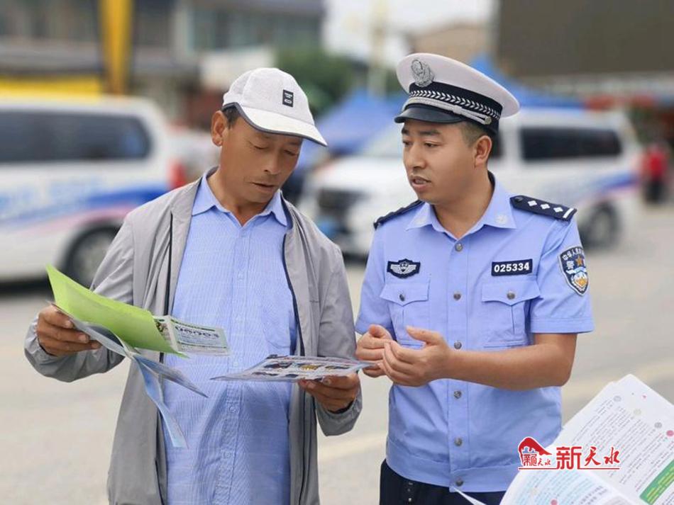 新天水讯 6月20日,秦安县公安局交警大队联合局治安大队、缉毒大队走进陇城镇开展“美丽乡村行”交通安全宣传活动,以进一步提升广大群众的交通安全意识,预防和减少乡镇道路交通事故,为群众营造顺畅安全的出行环境。