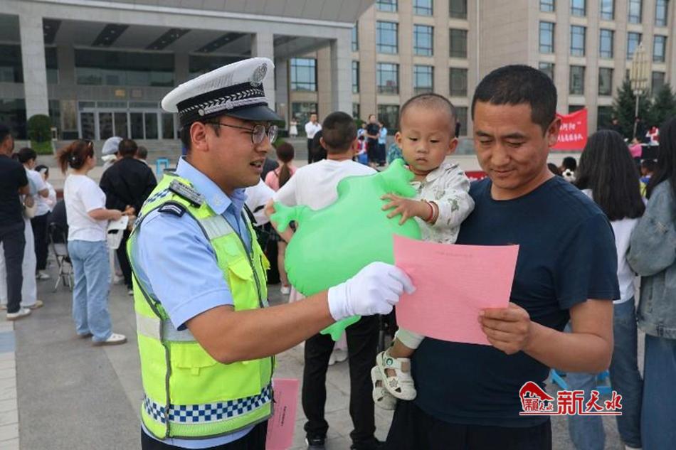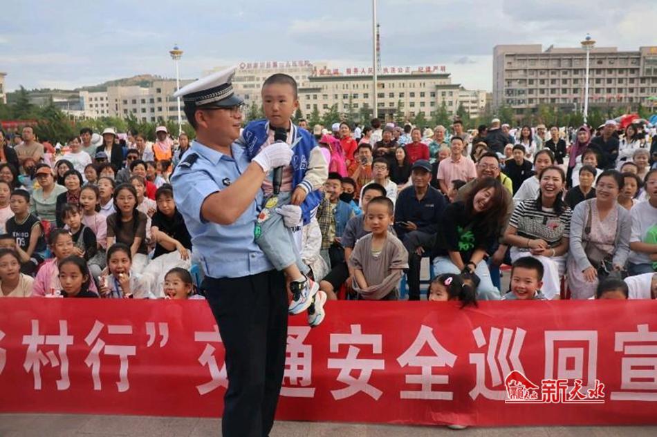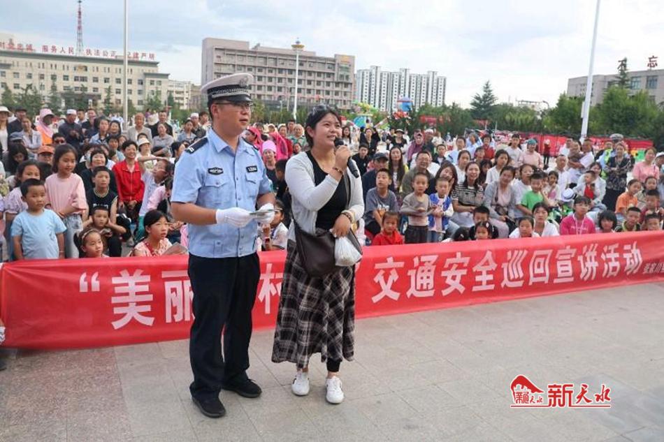 新天水讯 6月20日晚,张家川县公安局交警大队在县行政广场开展了“美丽乡村行”交通安全巡回宣讲活动,通过现场讲解、互动提问、有奖问答等方式,给广大群众送上交通安全知识大餐。