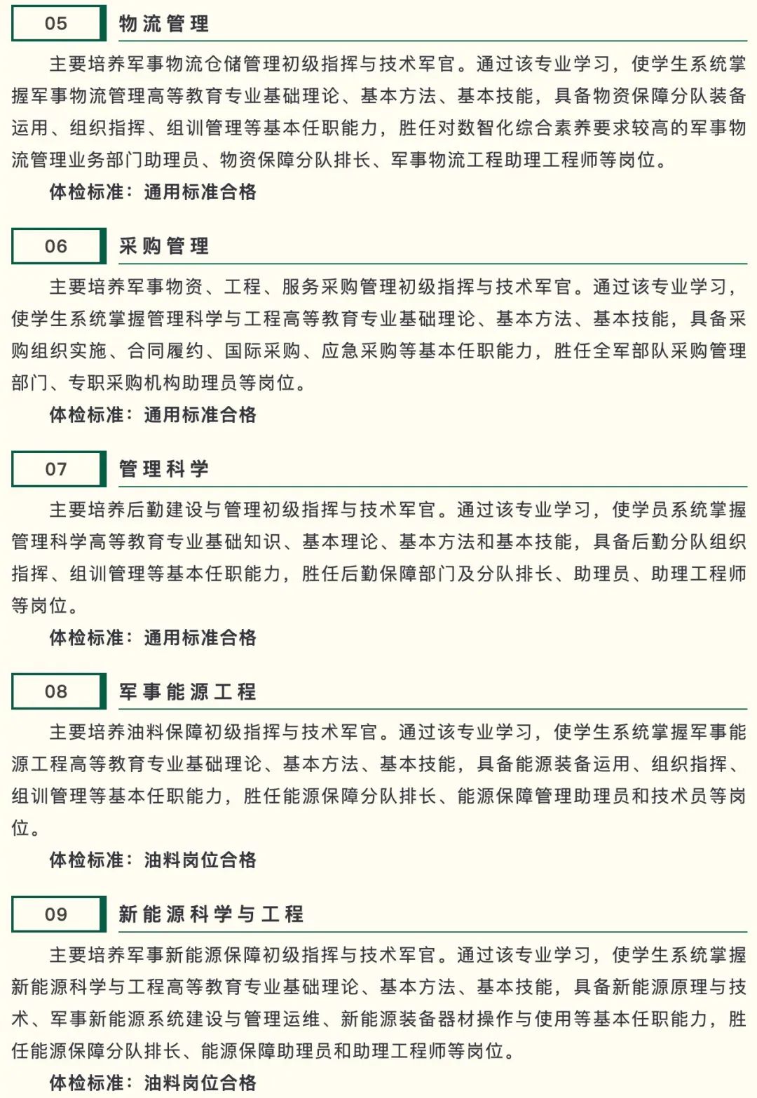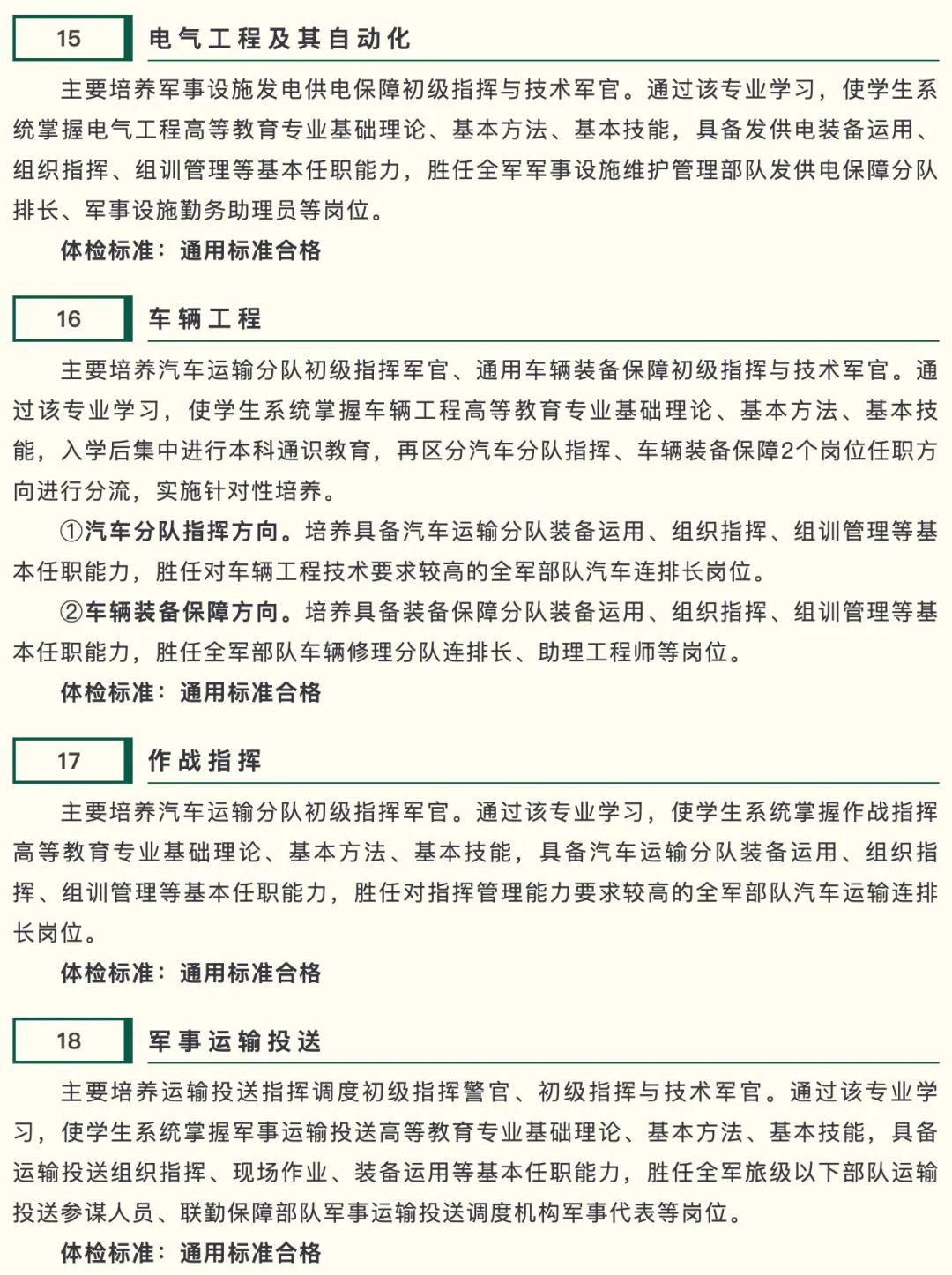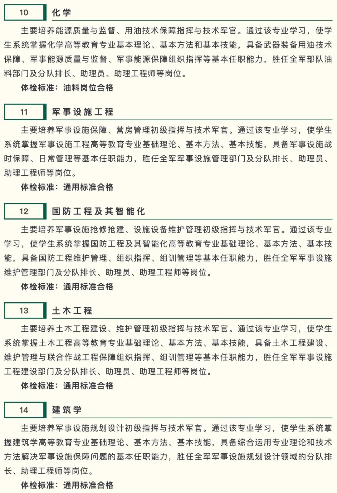 专业分别为通信工程、光电信息科学与工程、智能视觉工程、软件工程、网络工程、信息安全、数据科学与大数据技术、指挥信息系统工程、数据链工程、电磁频谱工程,均为物理类(理科),选考科目均为物理+化学。