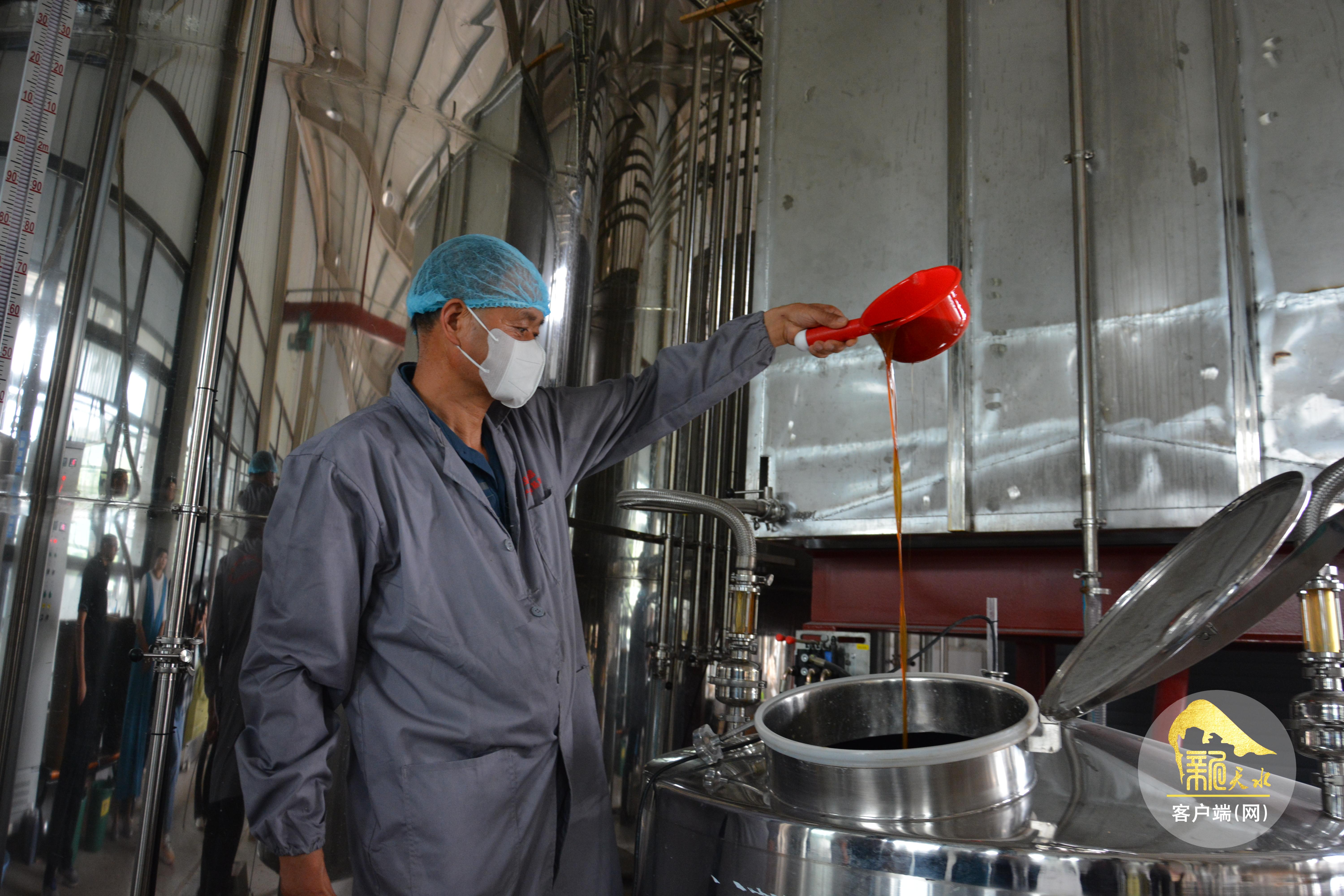 7月7日,在武山县四门食醋产业发展基地的生产车间里,食醋酿造技师穿着工作服,穿梭于各仪器设备间,准点把控工艺程序,确保酿造出来的食醋风味纯正、馥郁醇酸。