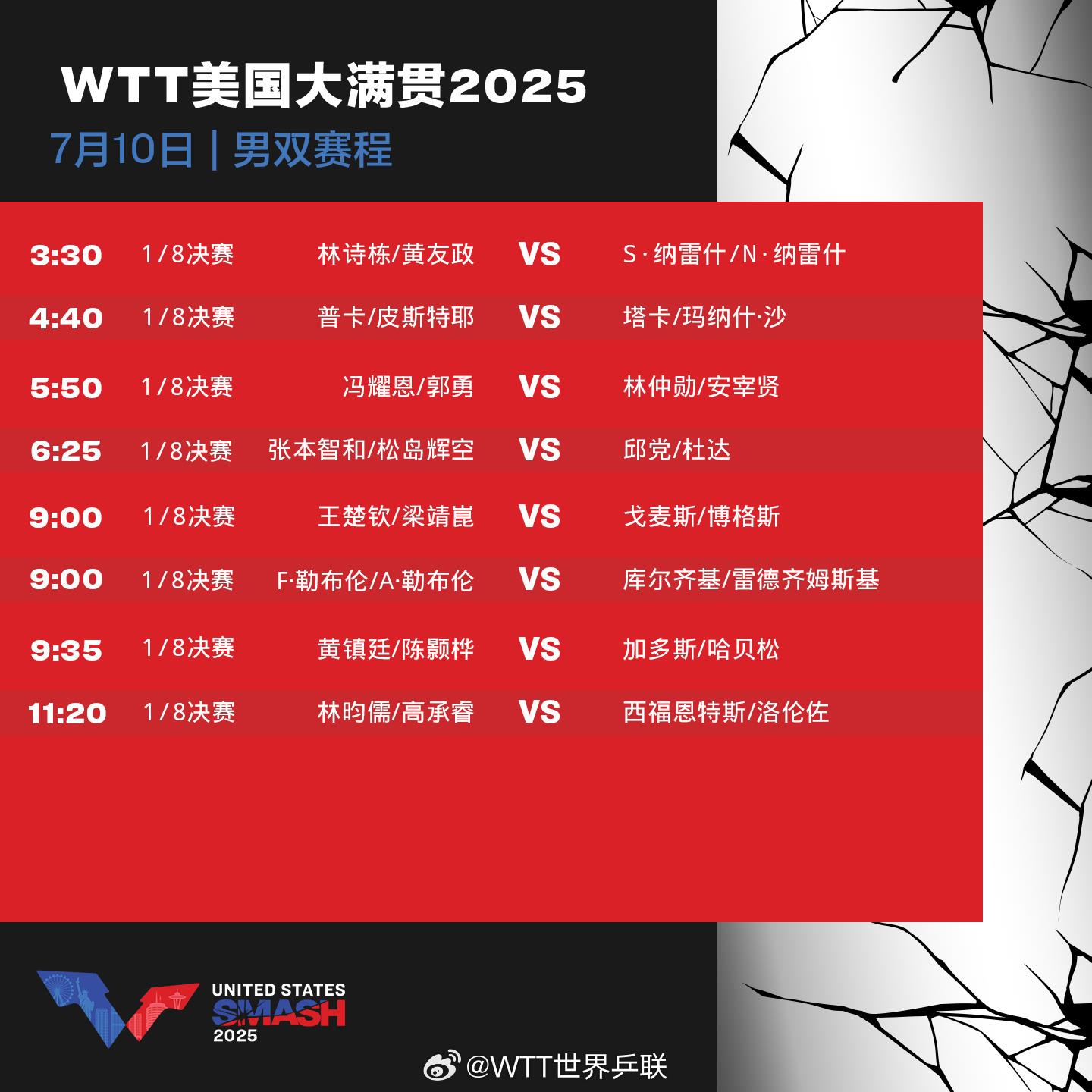 9:00🏓王楚钦/梁靖崑 VS 戈麦斯/博格斯
