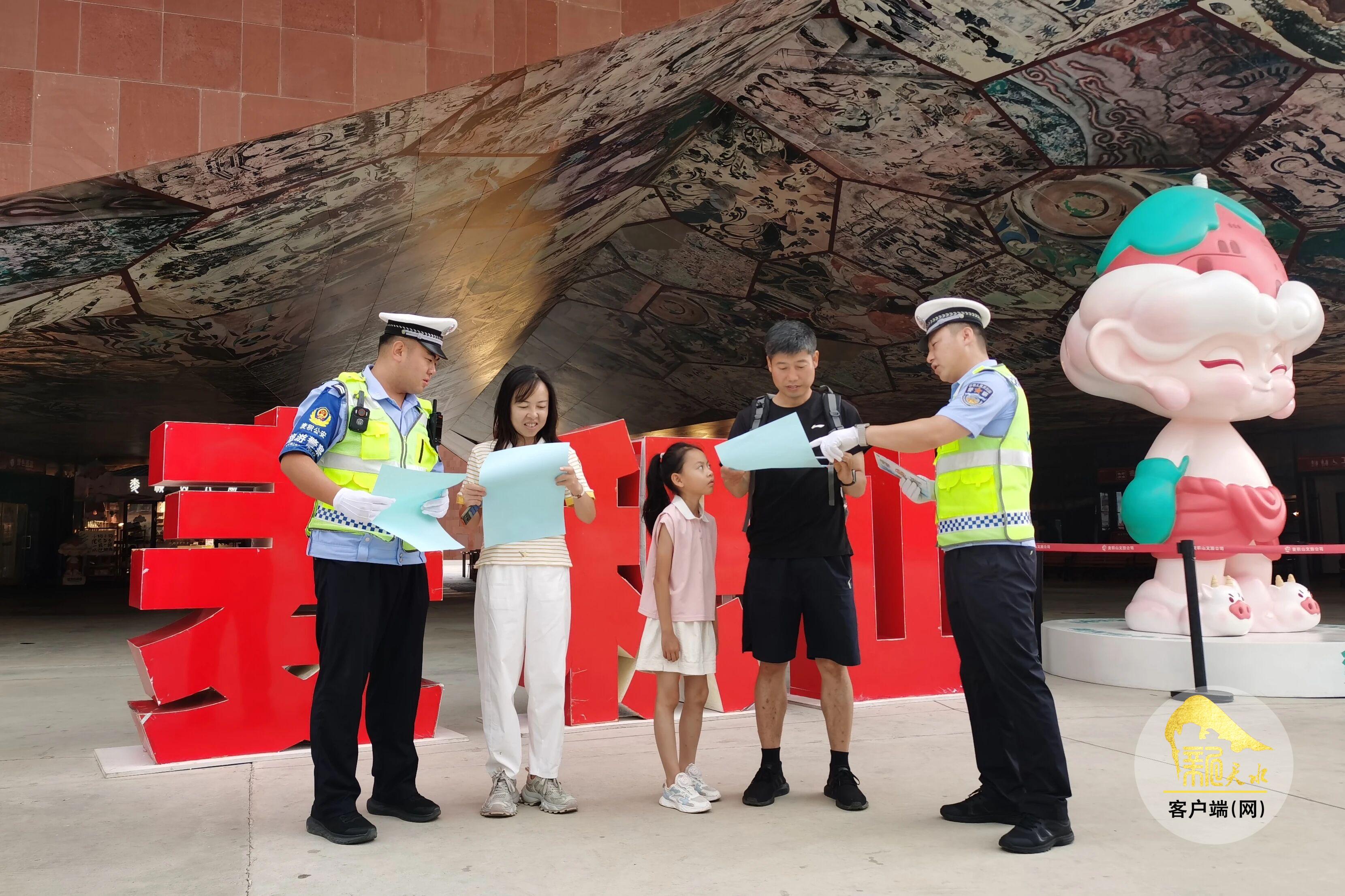 新天水讯【记者 裴婷婷 张雷】为持续营造安全、文明、畅通的景区道路交通环境,提升游客及景区工作人员的交通安全意识和自我防护能力,近日,麦积公安交警深入景区,组织开展了形式多样、内容丰富的交通安全主题宣传活动,将“安全出行”理念传递给每一位游客。