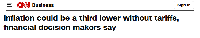 美国有线电视新闻网(CNN)24日报道援引杜克大学与里士满联储、亚特兰大联储当日联合发布的《首席财务官调查》(The CFO Survey)显示,受访企业首席财务官们估计,其所在公司今年约三分之一的价格上涨可归因于关税。分析认为,若无这些历史性高额关税,美国今年的通胀率可能从当前的2.9%降至美联储设定的2%目标水平。