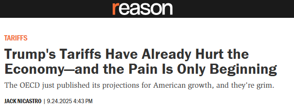 此外,实际经济影响已开始显现。达拉斯联储8月调查显示,得克萨斯州60%的零售商和70%的制造商称关税对其业务产生负面影响。《纽约时报》报道称,“约翰迪尔公司因钢铁和铝关税损失了约3亿美元,预计到今年年底还会再损失近3亿美元。”