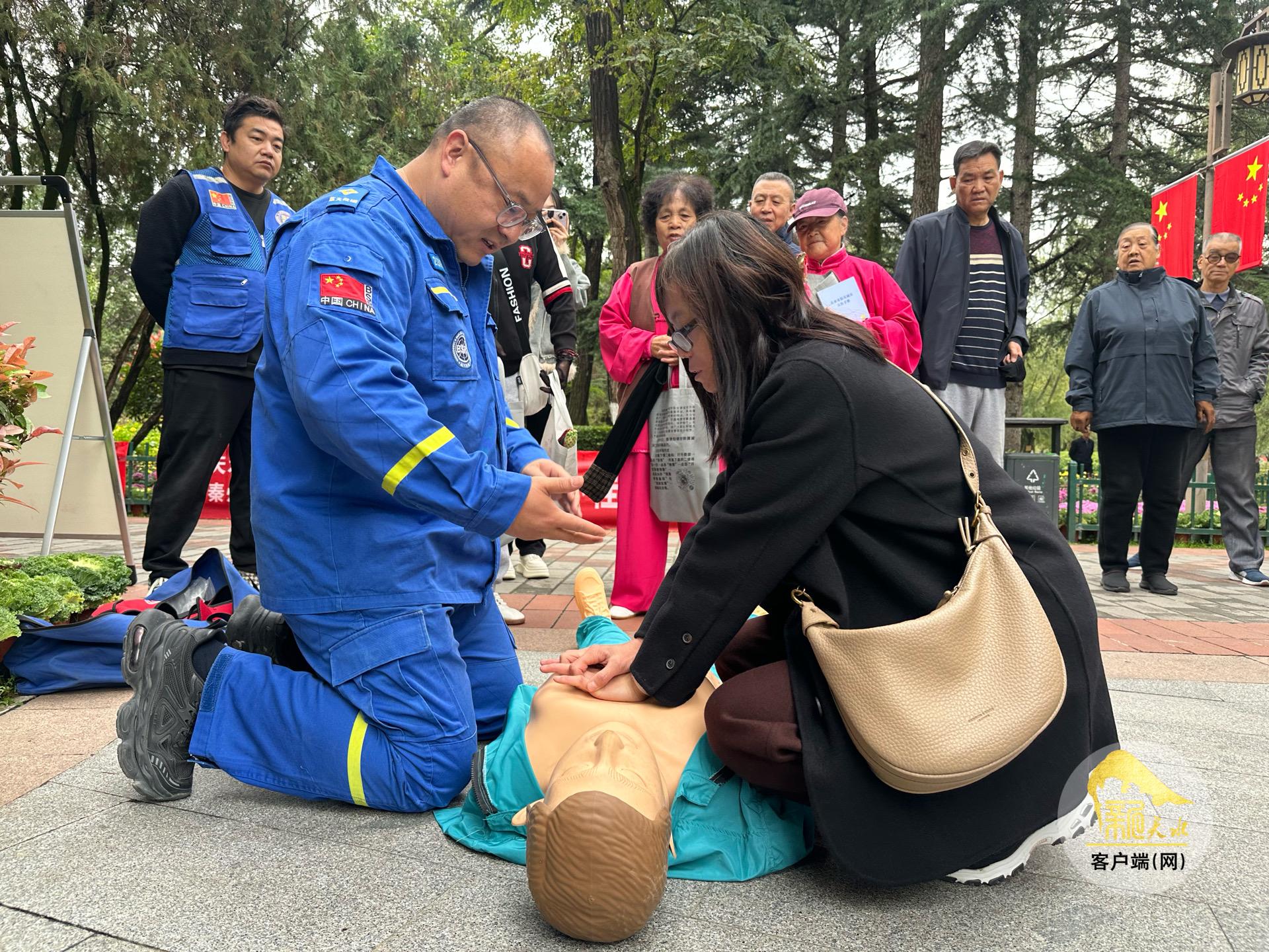 除了传统的图文展示和资料发放,本次活动还增加了参观学习和互动体验环节。在天水市防灾减灾科普基地,工作人员引导市民参观了应急物资库,观看了科普小电影。活动现场设置的心肺复苏教学点前,围满了感兴趣的市民,大家在专业人员指导下,认真学习紧急救护技能。