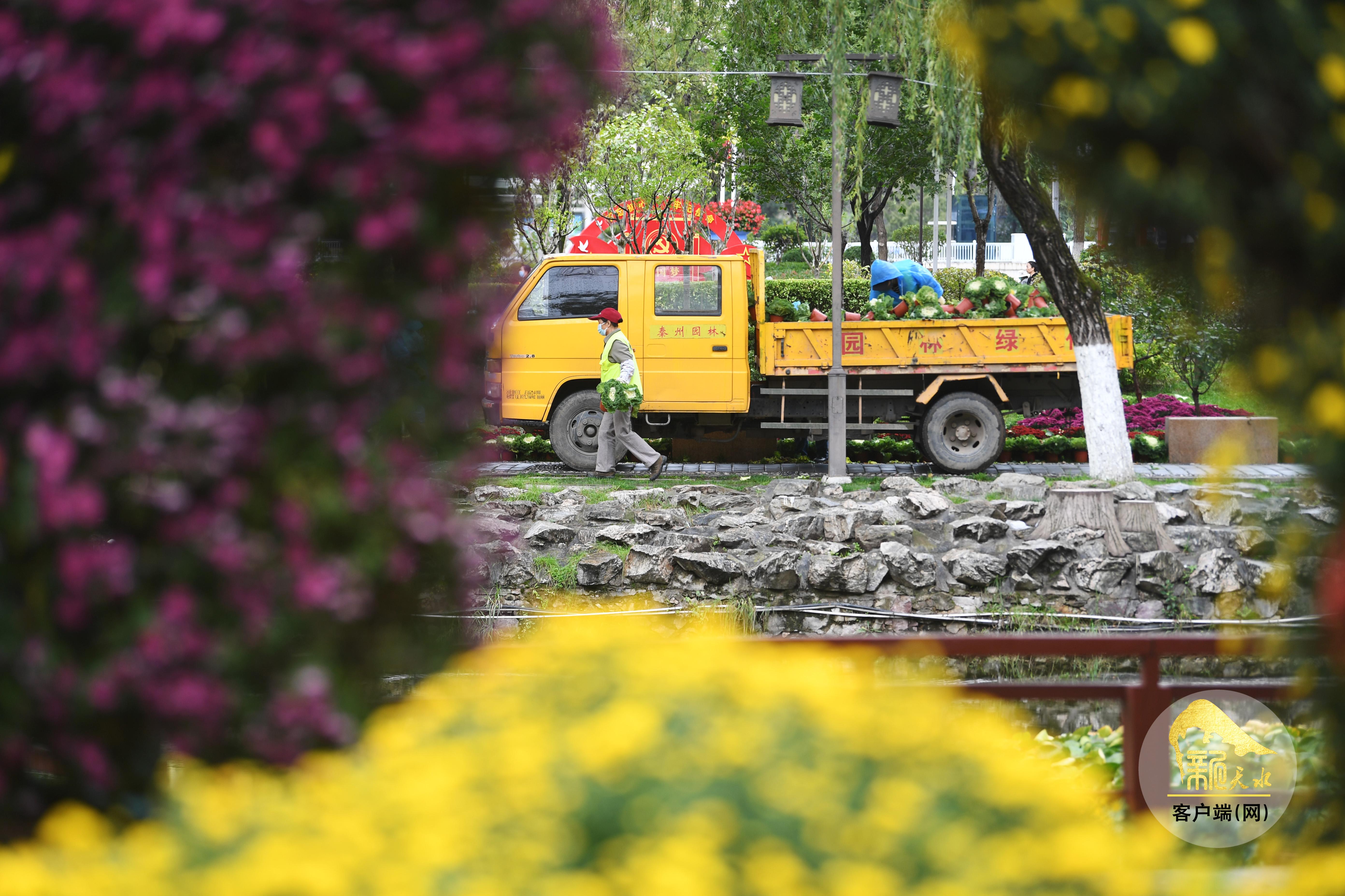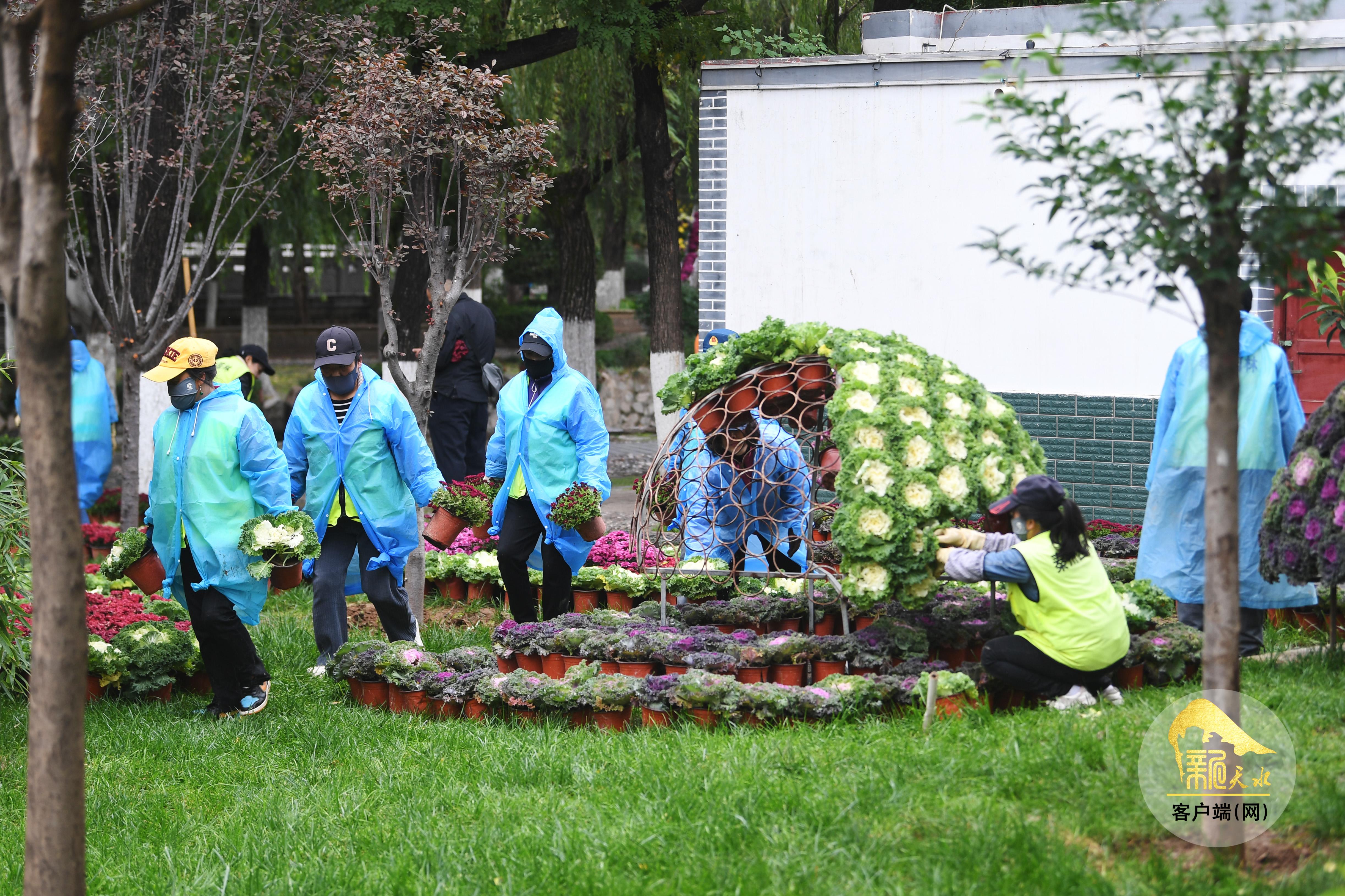 10月16日,工作人员在人民公园有条不紊地布展。此次菊展的主题为“金秋菊韵·诗意秦州”,精心打造了十一个主题展区,共展出各类菊花4万余盆,另外还有精品插花1.8万枝,将自然之美与艺术巧思深度融合,展品规模堪称历年之最。