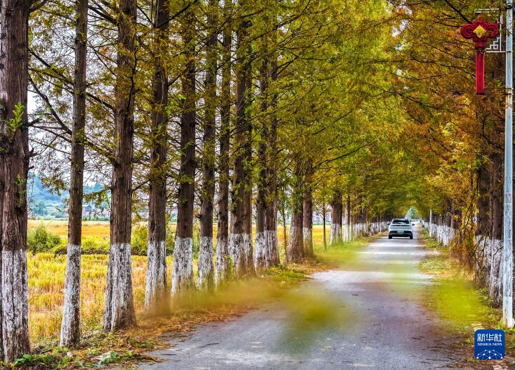 10月19日在湖南省常宁市三角塘镇长江村拍摄的乡村秋色(无人机照片)。
