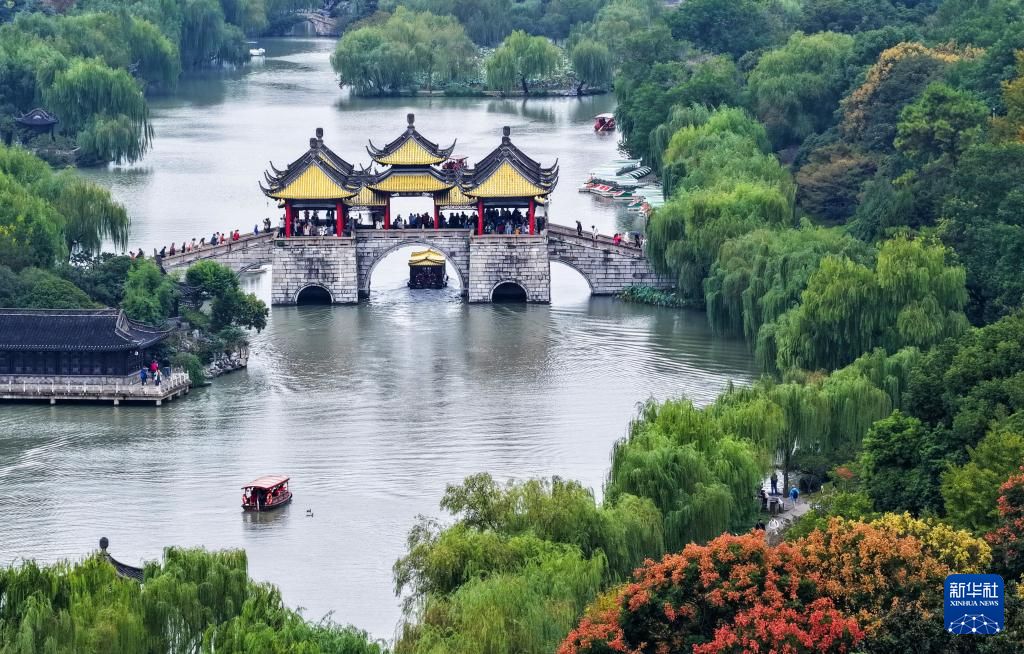 这是10月19日拍摄的江苏扬州瘦西湖风景区秋景(无人机照片)。