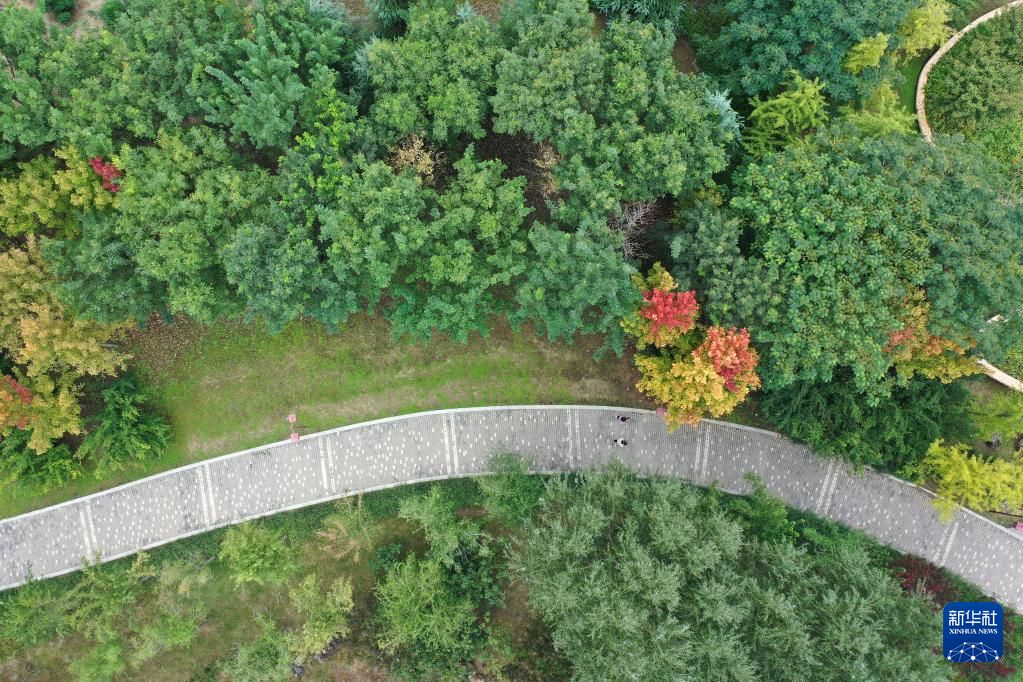 10月19日,人们在河南省焦作市温县子夏公园休闲健身(无人机照片)。