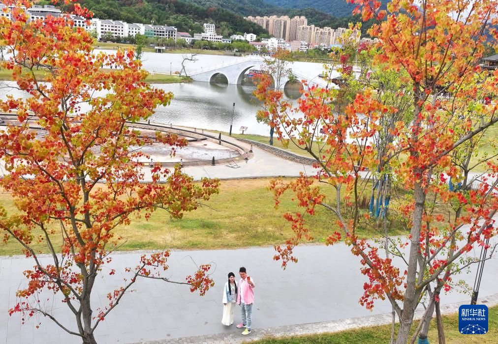 10月19日,人们在浙江义乌植物园赏景游玩。