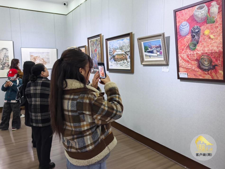 开展当天,不少市民专程前来观展,或驻足凝视,或低声交流,在心仪的画作前拍照留念,在笔墨与色彩之间感受艺术魅力和领略家乡之美。