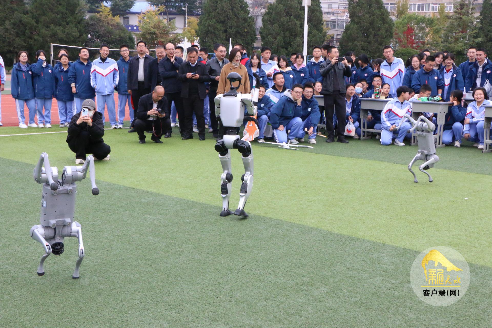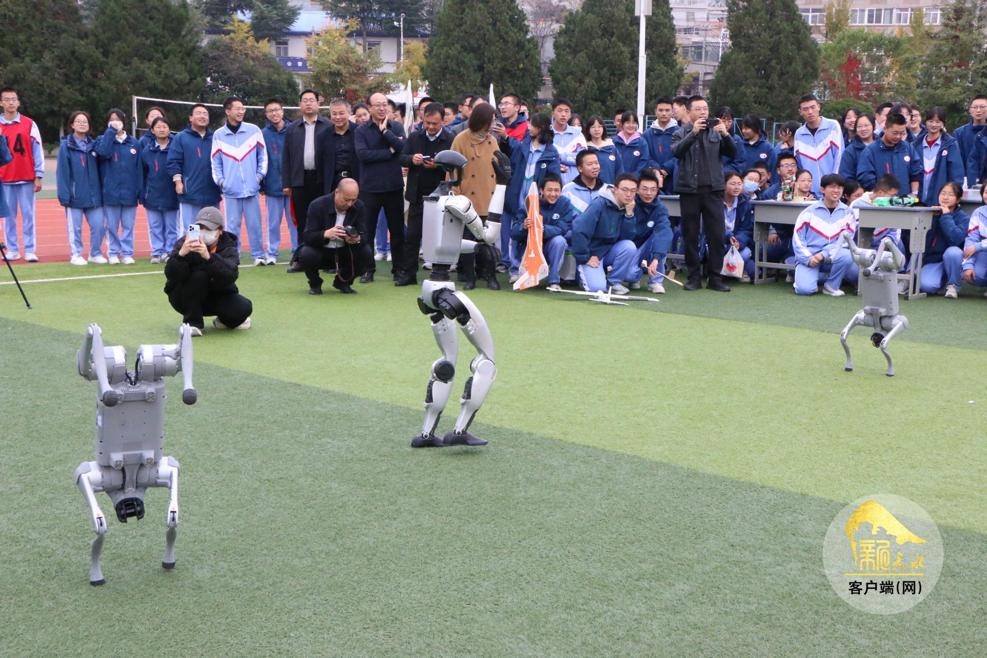 在机器人互动舞台秀中,科技辅导员精心编排的机器人舞步与音乐完美融合,灵活的身姿与精准的互动,生动展现了人工智能的智慧与温度,赢得阵阵掌声。智能机器狗则以流畅的跑动、跳跃等高难度动作,展示了机器人技术的前沿成果,将现场氛围推向高潮。科普实验秀区域人气火爆,“干冰魔法”“掌中火”“空气冲击波”“马德堡半球实验”“烟圈炮弹”等互动实验趣味十足,学生们在亲手操作中感受科学魅力,激发探索热情。