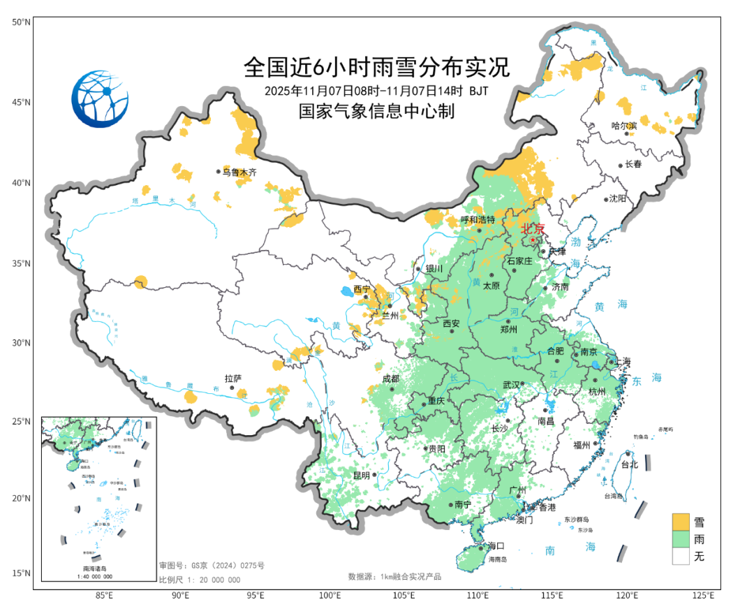 随着冷空气东移南下,今天白天,降水向东铺展波及内蒙古中部、陕西、山西、北京、河北、河南、安徽、湖北等多地。内蒙古中东部、东北地区部分地区降温明显,降幅超10℃。