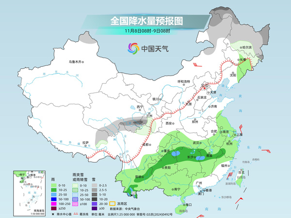 周末两天(11月8日至9日),冷空气将继续东移南下,东北多地仍有较强降雪,江南多地降雨增强,公众外出需小心慢行,警惕能见度降低和道路湿滑对交通的不利影响。在冷空气和降雨的共同影响下,江南多地将开启降温模式,湿冷感加重,需及时添衣防感冒。