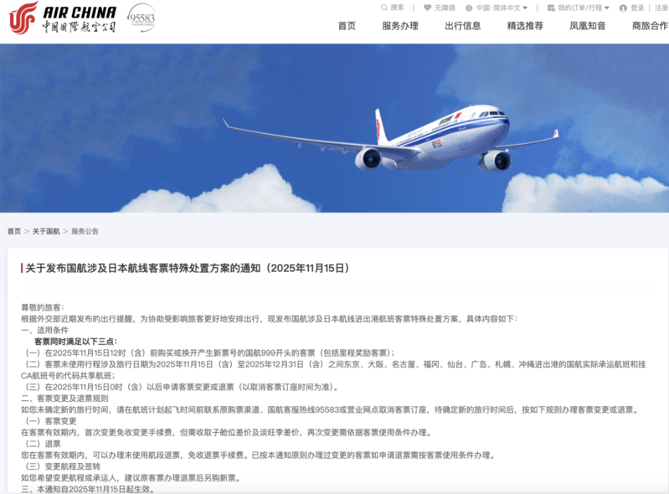各航司的政策核心条款基本一致,普遍适用于出行日期在2025年11月15日至12月31日之间的客票,涉及往返东京、大阪、福冈、札幌、冲绳等日本主要城市的航班。