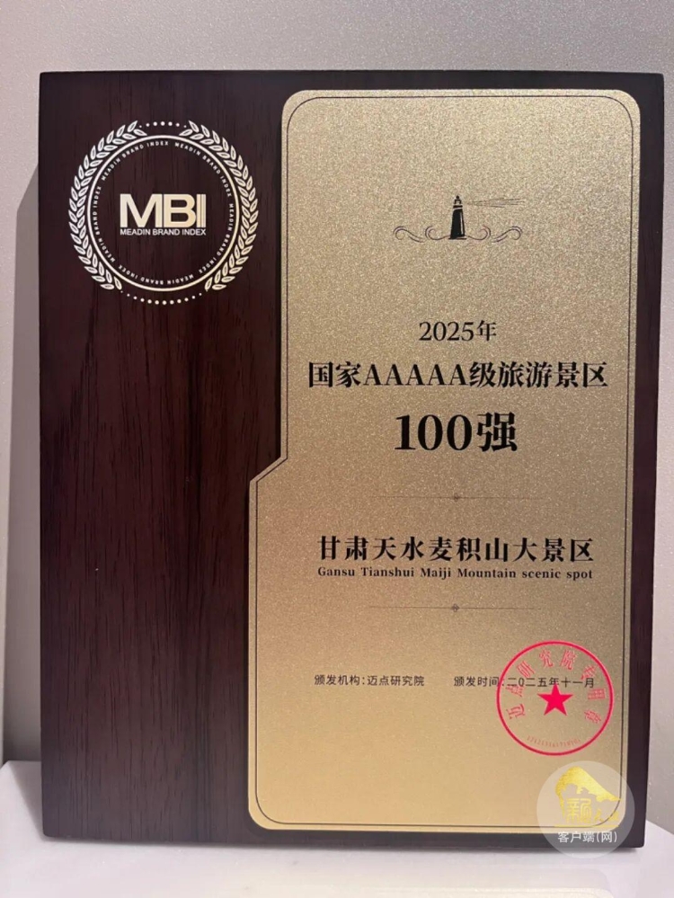 麦积山大景区再度荣获“2025年度MBI国家5A级旅游景区影响力前30强”