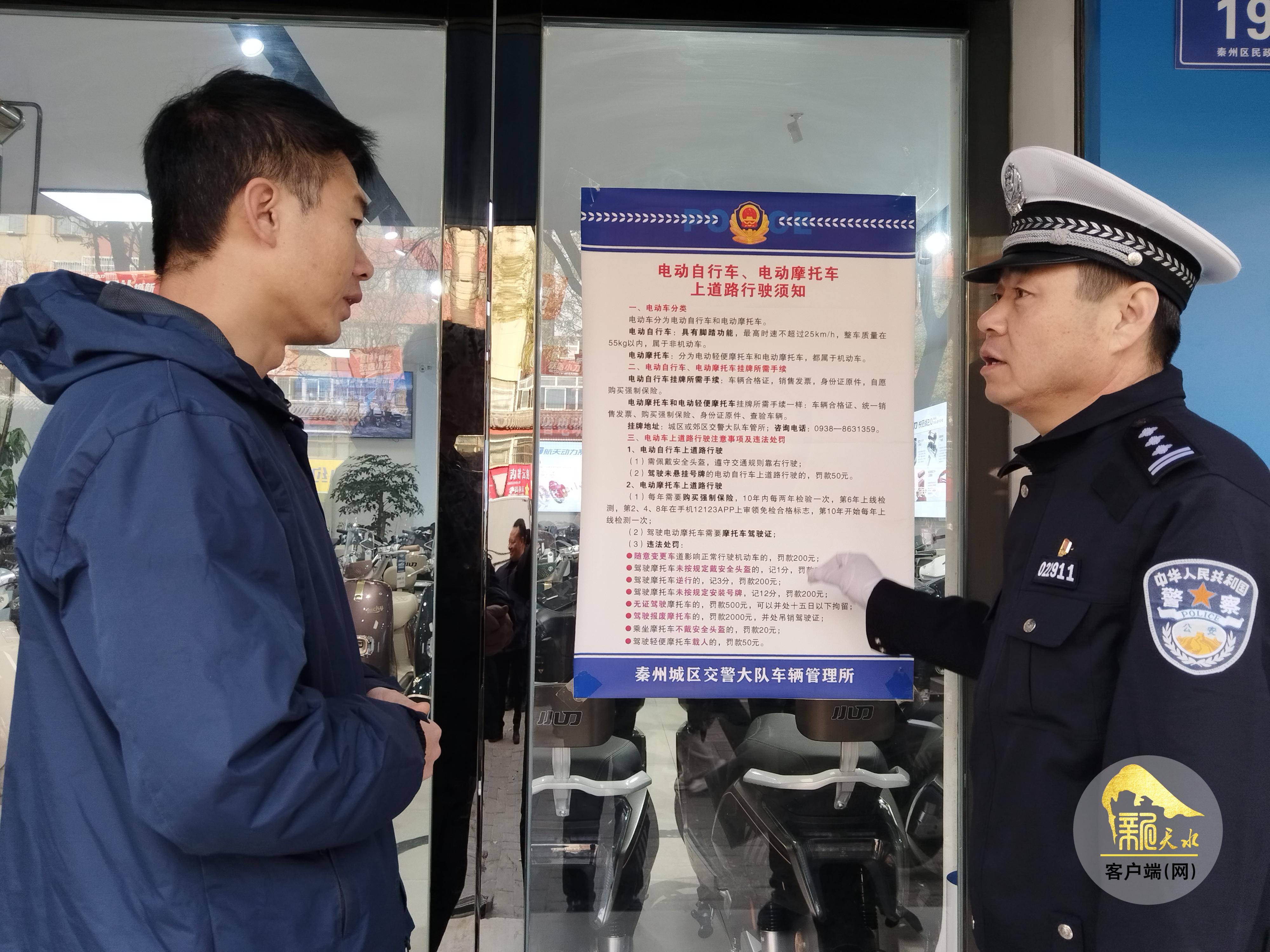 电动车规范管理需从源头抓起,秦州公安分局交通管理大队车辆管理所主动作为,深入辖区电动车销售企业,开展上门宣传和服务。