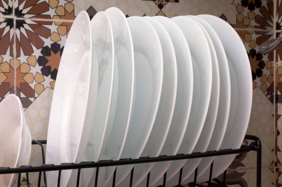 洗完的碗盘应该立起来存放在通风处。