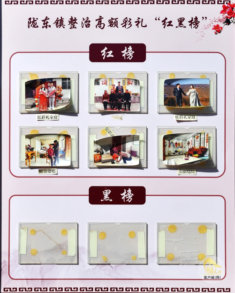 公示栏前,红榜张贴着冯爱儿等3户“低彩礼家庭”的表彰照,黑榜则记录着高彩礼拒改家庭的劝导进度。“双榜联动”将无形的道德评判,转化为了看得见、摸得着的激励与约束。