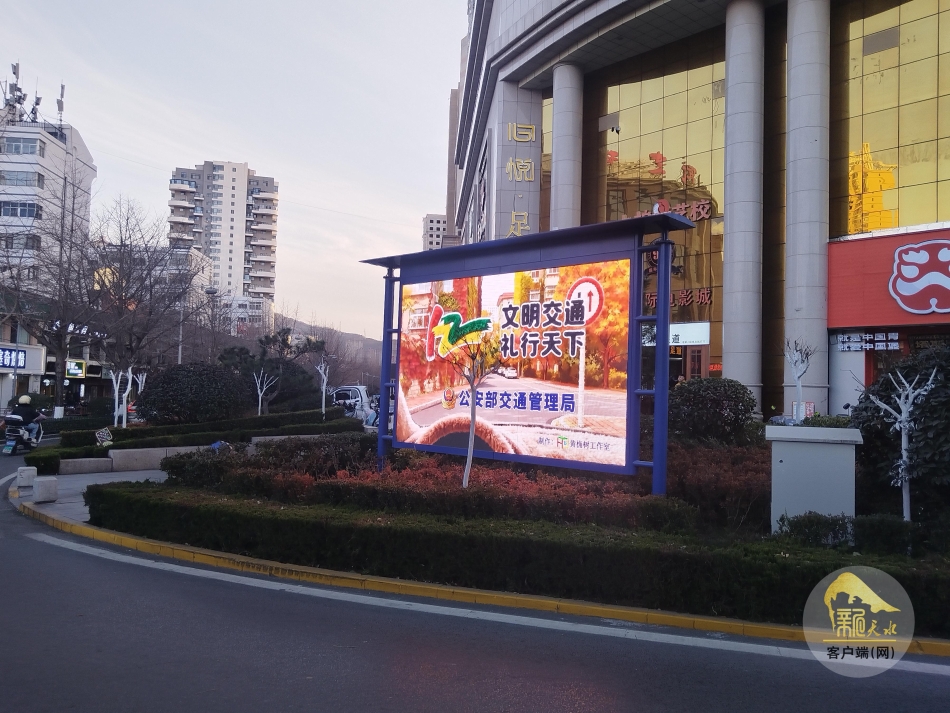 连日来,为拓展“礼行”文化传播渠道,我市利用户外大屏、交通诱导屏等宣传阵地,滚动播放公益广告、典型事故案例等安全提示。记者在秦州区龙城广场看到,LED电子显示屏上滚动播放着交通安全宣传标语和视频。设置在百货大楼附近的一个LED电子显示屏,作为我市主城区首套采用自动识别技术的行人闯红灯抓拍设备,不时切换着个别行人闯红灯的实时画面,还穿插播放着全国交通安全日的宣传视频。在天水市汽车总站、市区各公交车站,都能看到交通安全相关宣传标语。