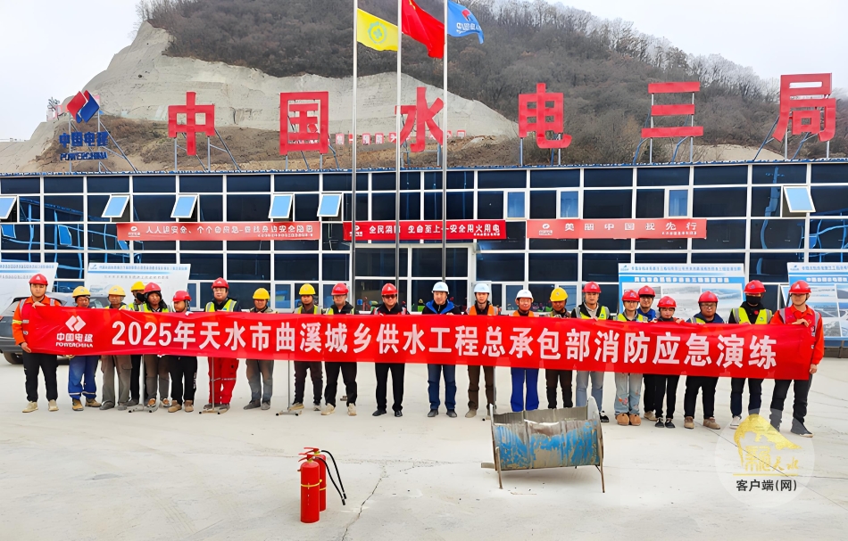 新天水讯【天水融媒记者 侯亚龙】日前,中国水电三局承建的天水曲溪城乡供水工程项目营地内,一场贴近实战的火灾应急演练正紧张有序展开。此次演练由工程总承包部精心组织,旨在通过模拟真实险情,全面检验并提升项目应对突发火灾的应急响应、指挥协调和现场处置能力,进一步夯实这一重大民生工程的建设安全基础。