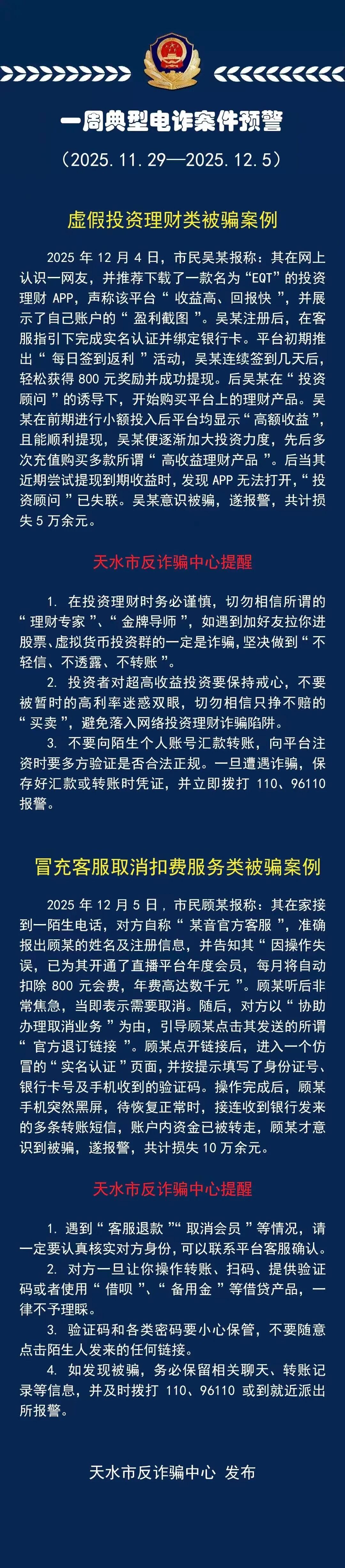 一周典型电诈案件预警(2025.11.29—2025.12.5)