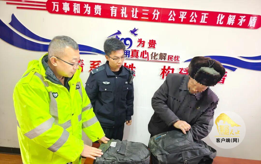 近日,武山县公安局滩歌派出所接到辖区居民董某求助,称其在滩歌镇某超市购物时,放在地上的背包被人拿错,包内有现金4700元、各类证件及治病的药品。接到求助后,滩歌派出所民辅警及时调取超市及附近监控录像,通过缩小区域范围、实地走访,确定辖区汪某将背包拿错。经了解,因两个背包外貌颜色相似,汪某在超市购物后,随手将放置在地上的背包拿错。经民警提醒后,汪某对自己的疏忽表示歉意,并积极将背包归还董某。