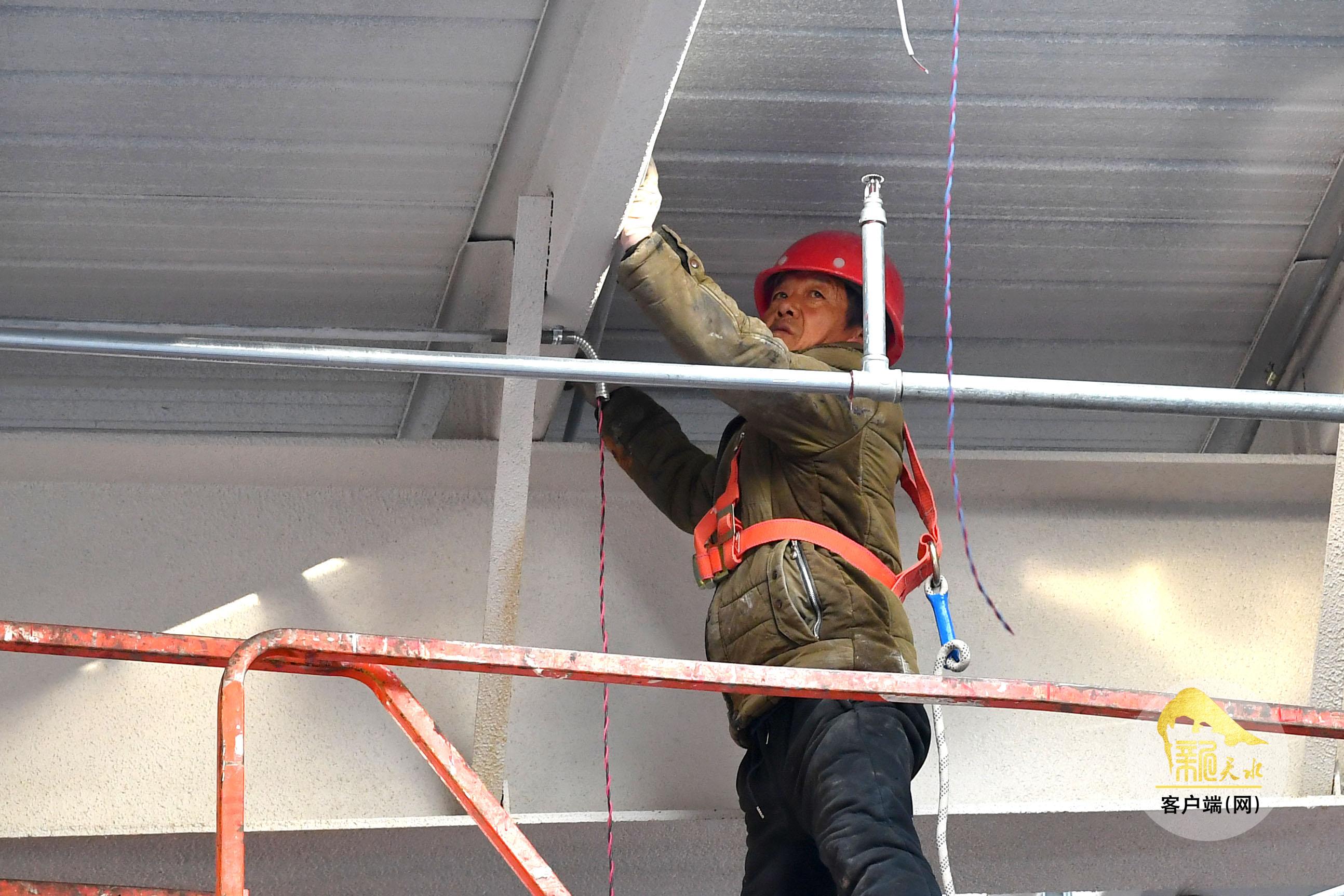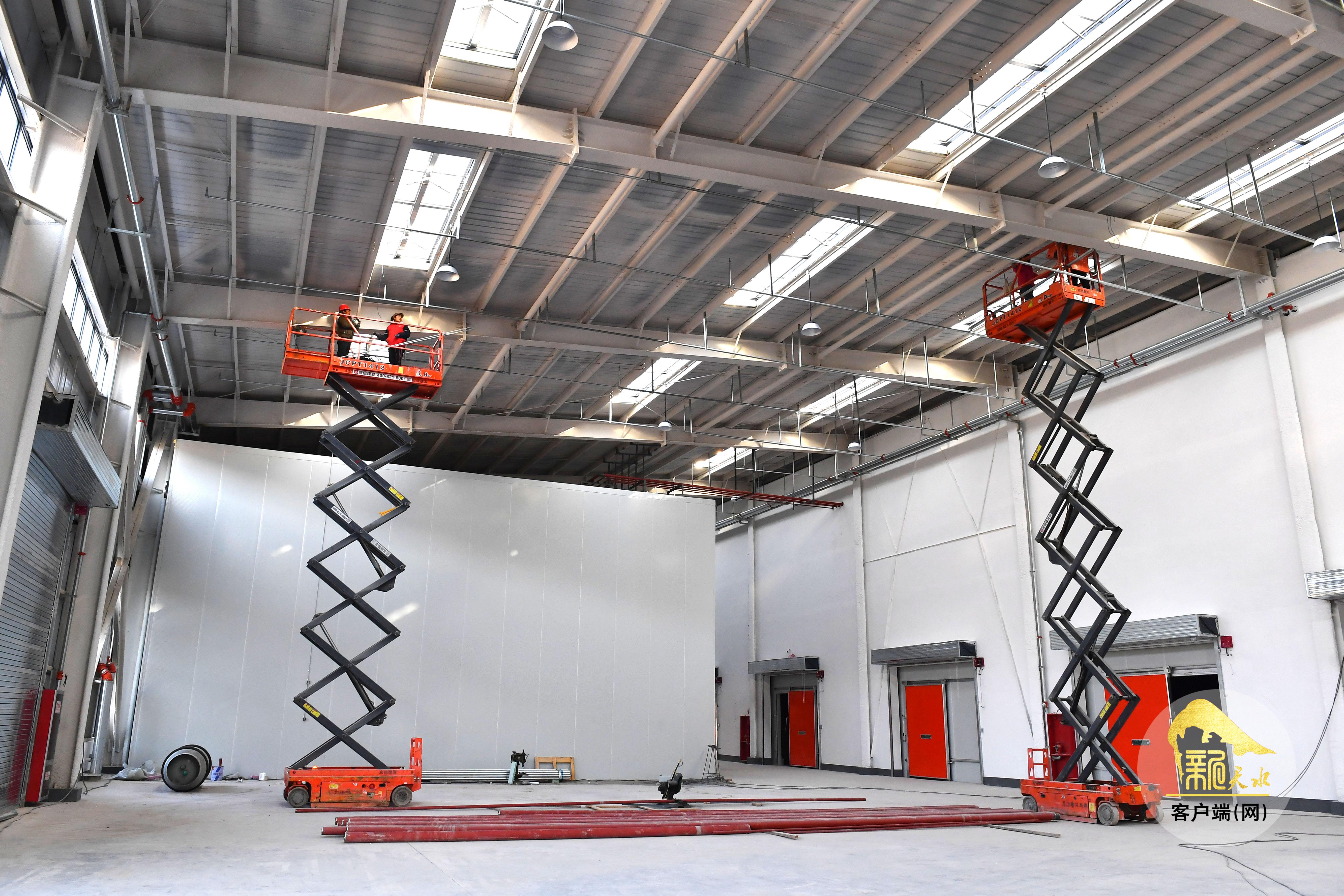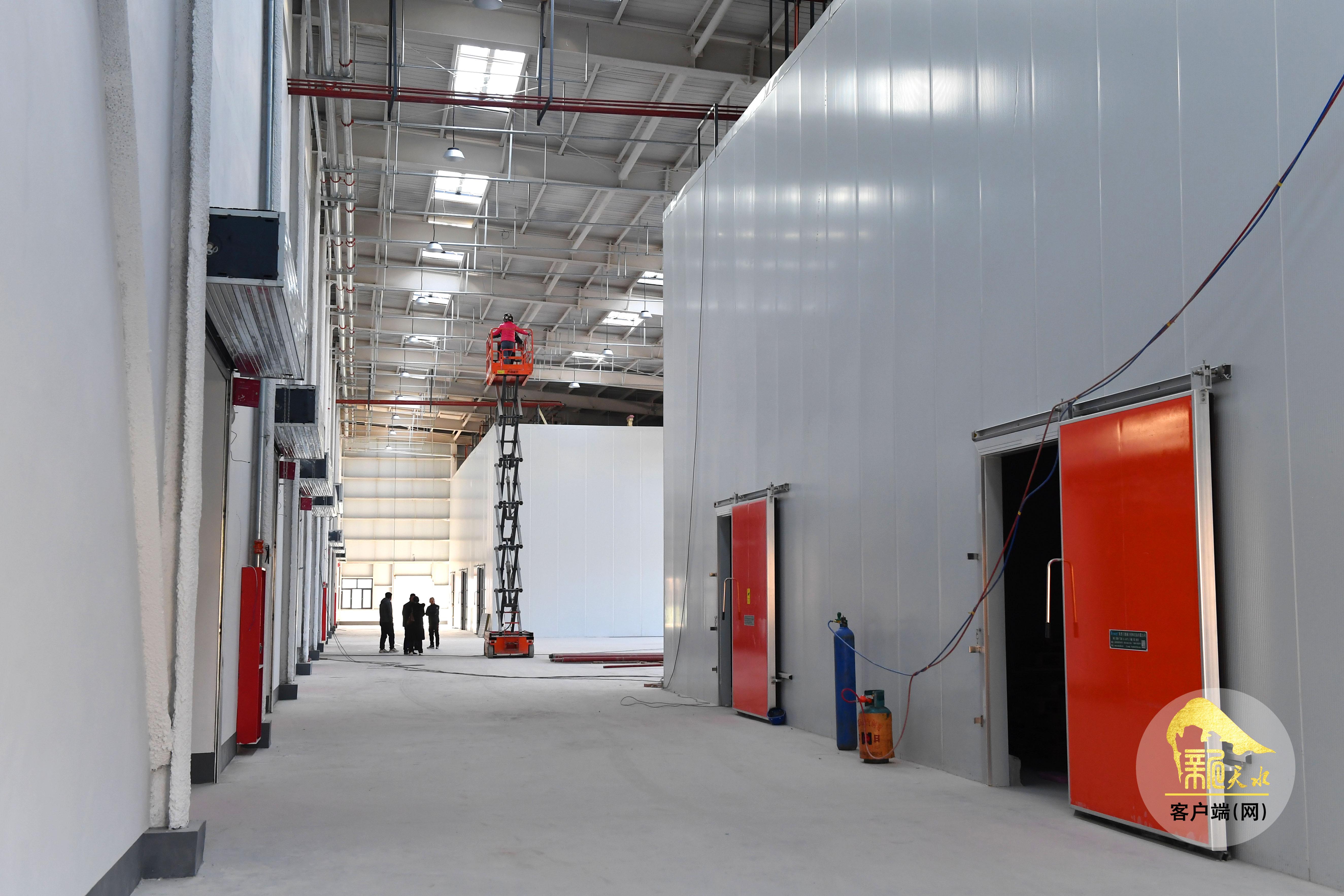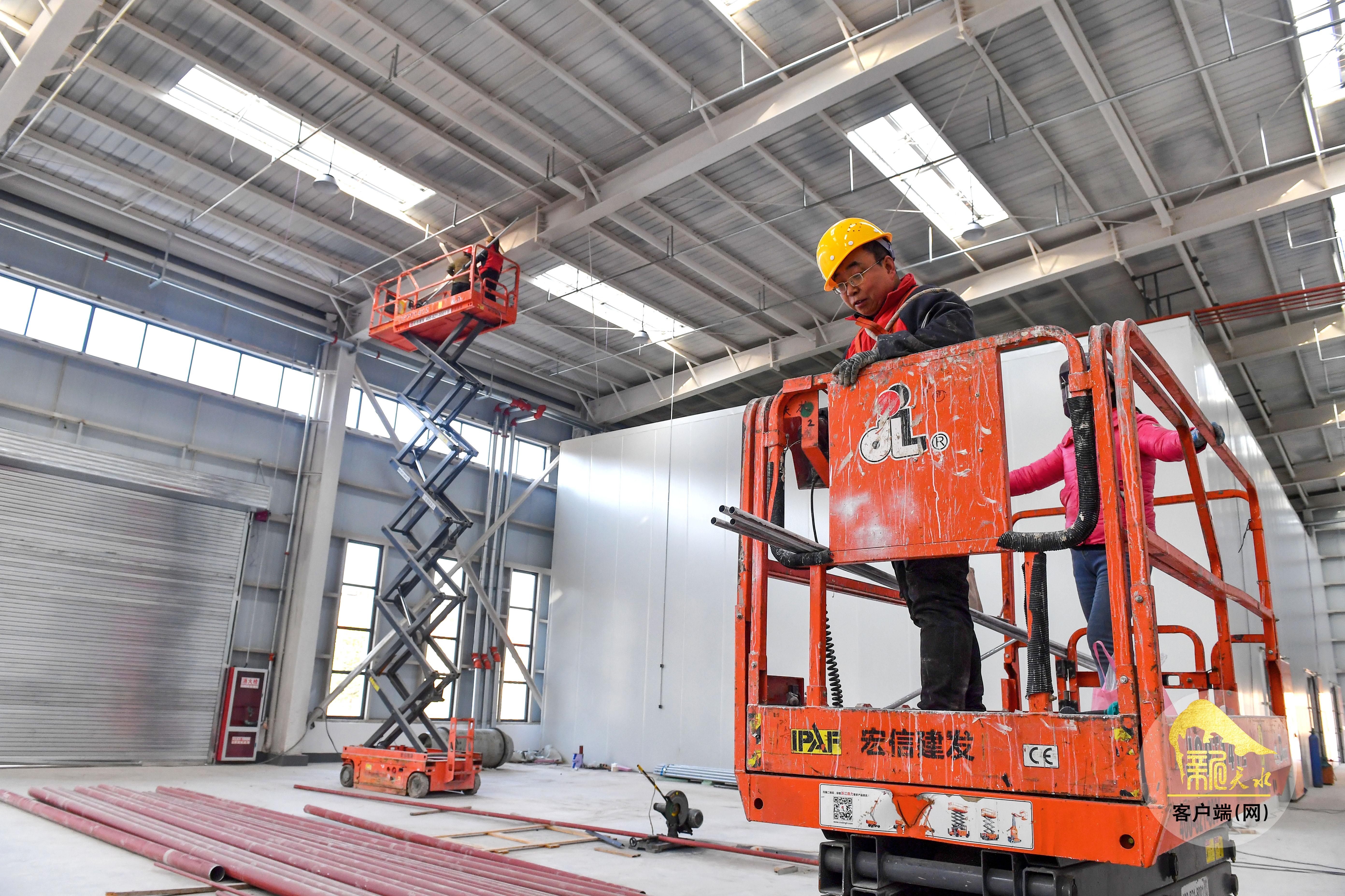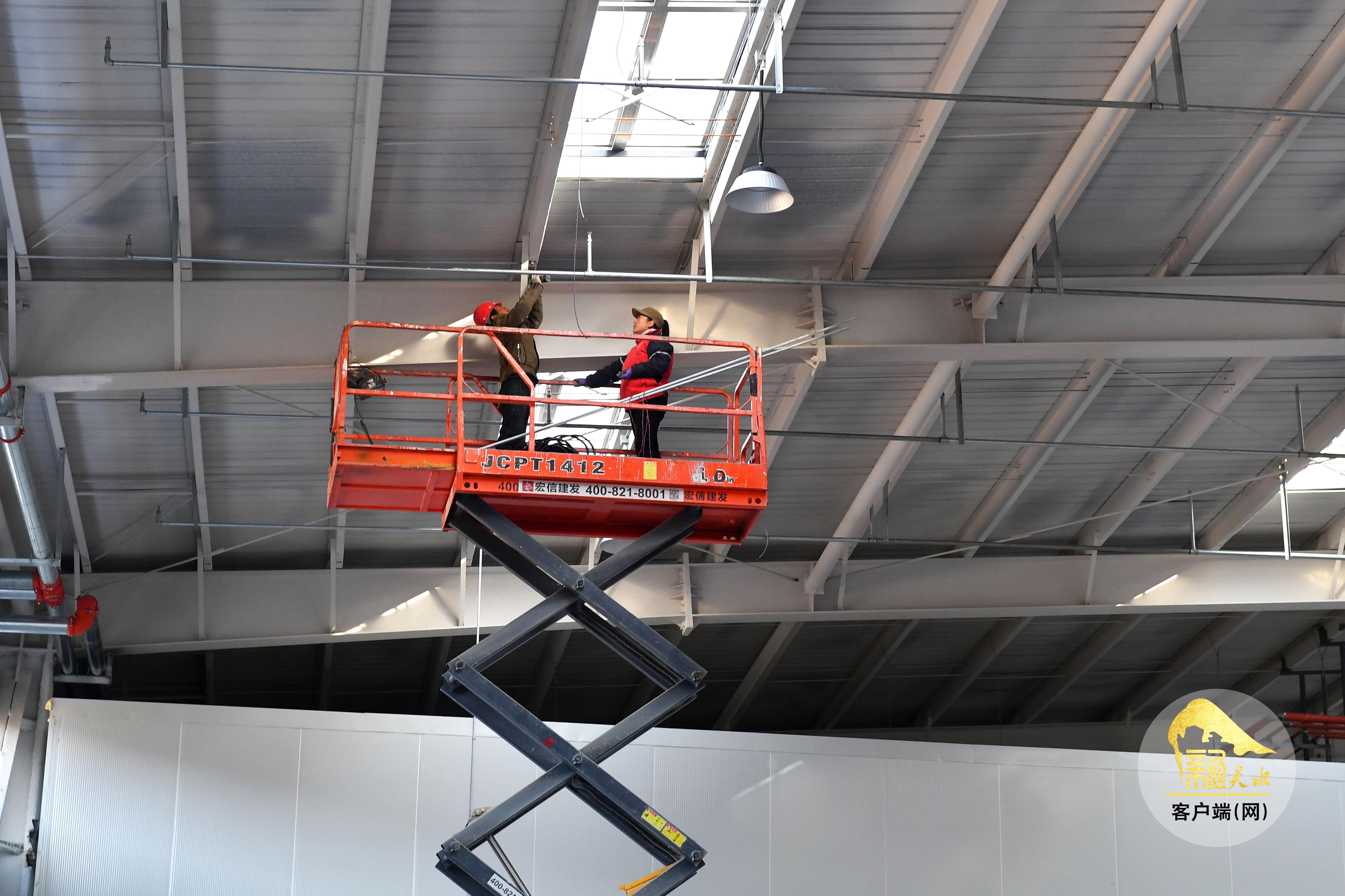 12月22日,甘谷县安远镇西城村农产品仓储及配送中心项目现场,工人们正进行收尾安装工作。
