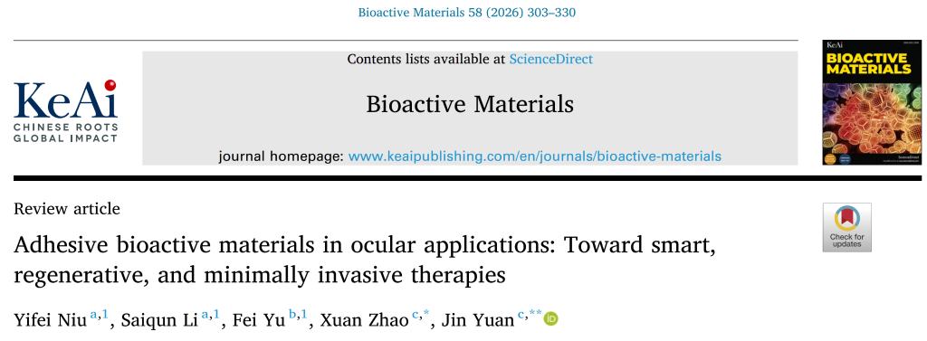 近日,首都医科大学附属北京同仁医院院长袁进教授团队在新一代眼科“生物胶水”研究领域取得重要进展,有望破解传统眼科手术缝线带来的一系列风险难题,也为这类材料从实验室走向临床应用提供了清晰的路径指引。该研究论文发表在国际学术期刊《生物活性材料》上。