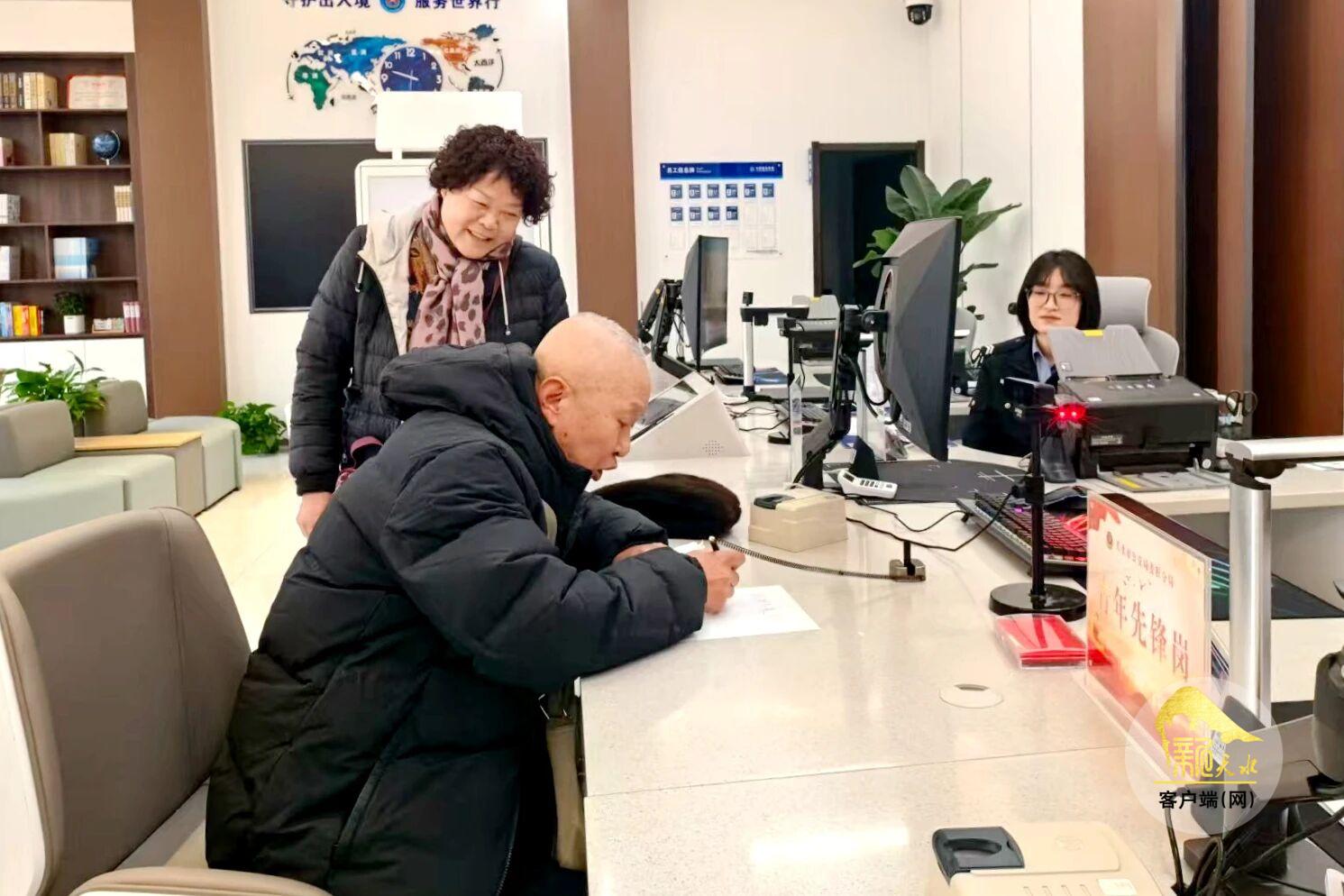 原来,张老先生前来办理护照,却因不熟悉智能设备操作且视力不佳,在自助填表环节犯了难。窗口工作人员发现老人的困难后,立即主动上前提供帮助,开启“陪伴式服务”。在工作人员的全程耐心引导和细致指导下,老人顺利完成了信息录入、照片采集等各项流程。同时,工作人员还为老人细致讲解了出入境相关政策及办证后续注意事项。在天水市公安局麦积分局出入境管理大队办证大厅民辅警的暖心护航下,仅用20分钟,老人便顺利办结了全部手续。