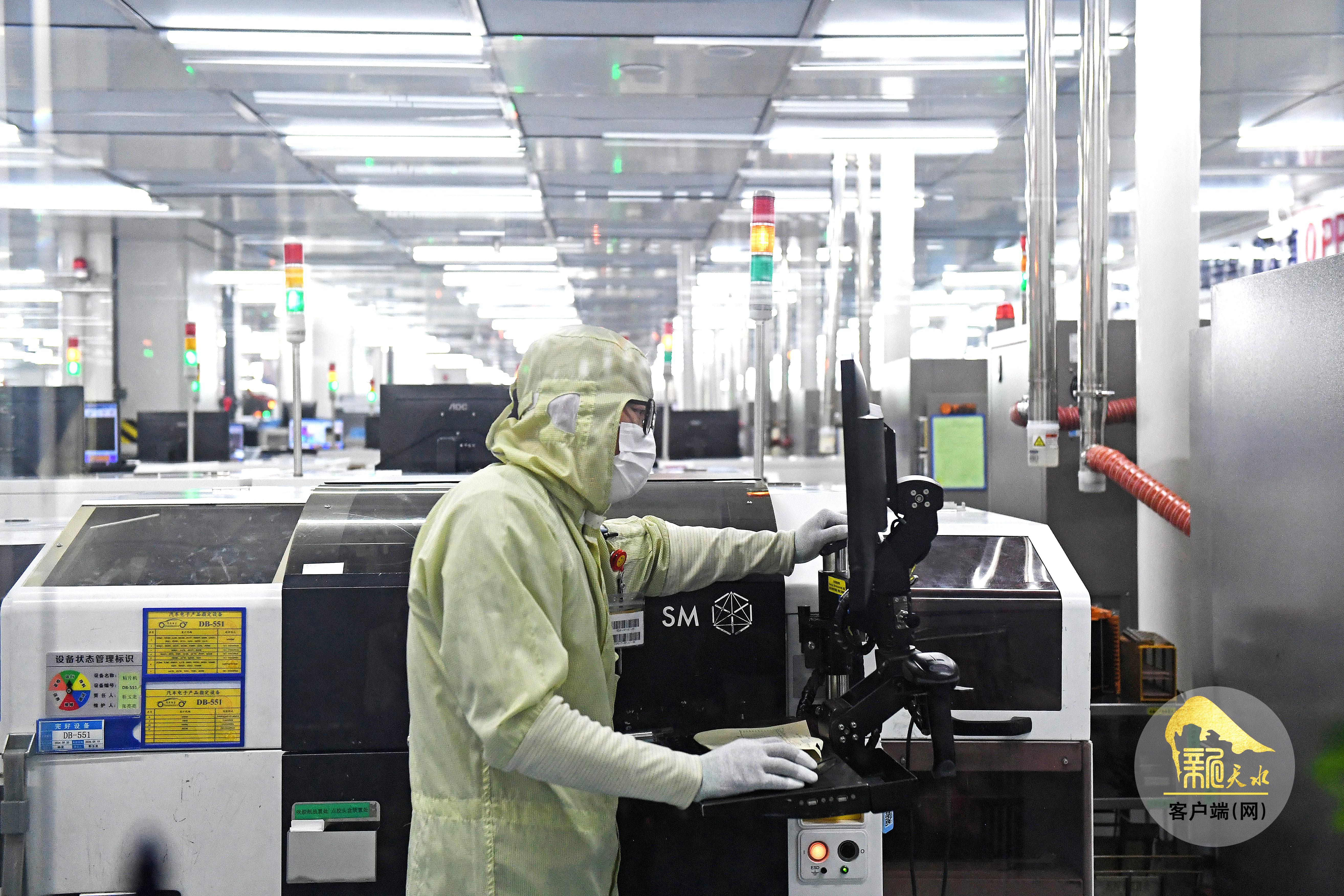 12月25日,天水华天电子集团股份有限公司车间里的工人在集成电路封装线上抓紧生产。