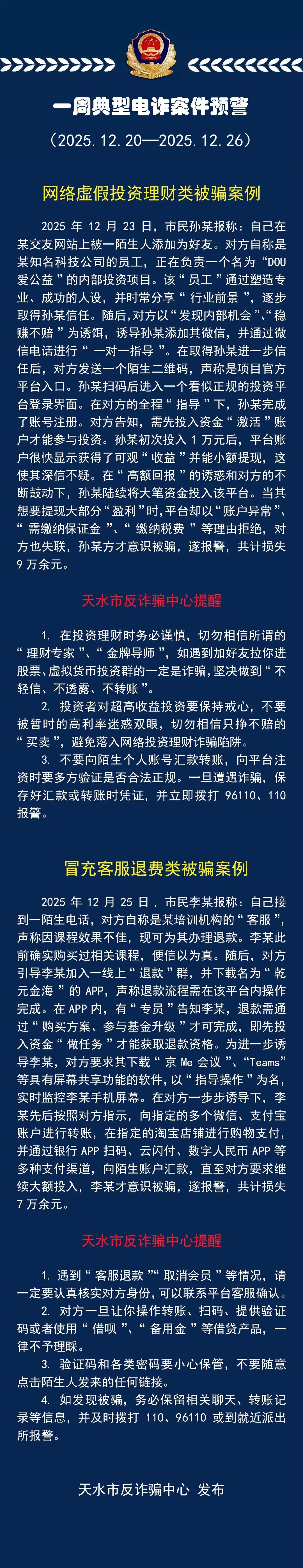 一周典型电诈案件预警(2025.12.20—2025.12.26)