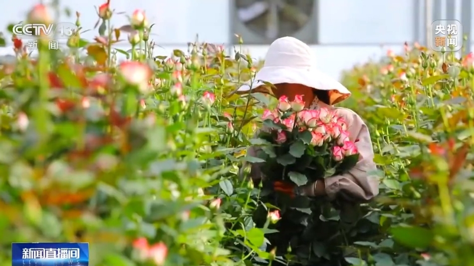 在河北邱县,玫瑰产业园的玫瑰鲜切花也迎来了销售旺季,采摘工人每天工作9个小时采摘玫瑰花,日销玫瑰超8万枝,直供京津冀市场。