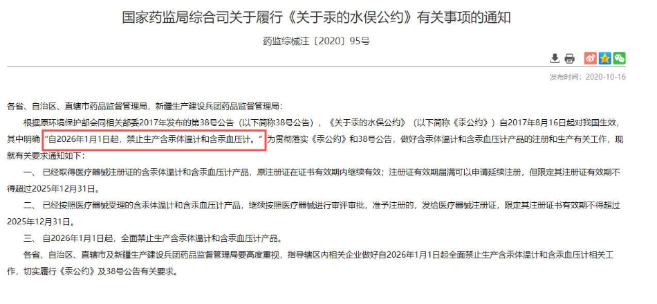 图为国家药监局综合司关于履行《关于汞的水俣公约》有关事项的通知。(截图)