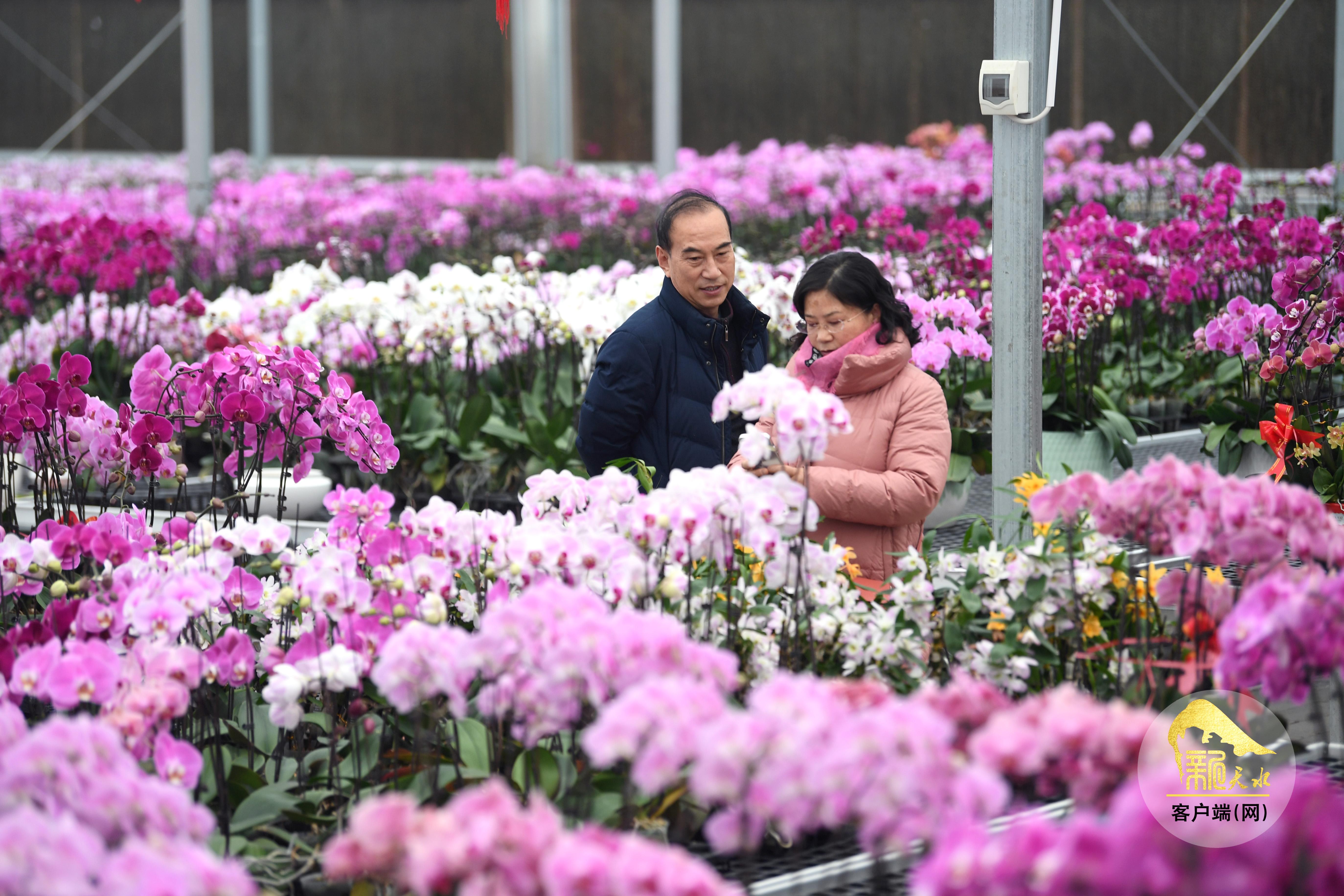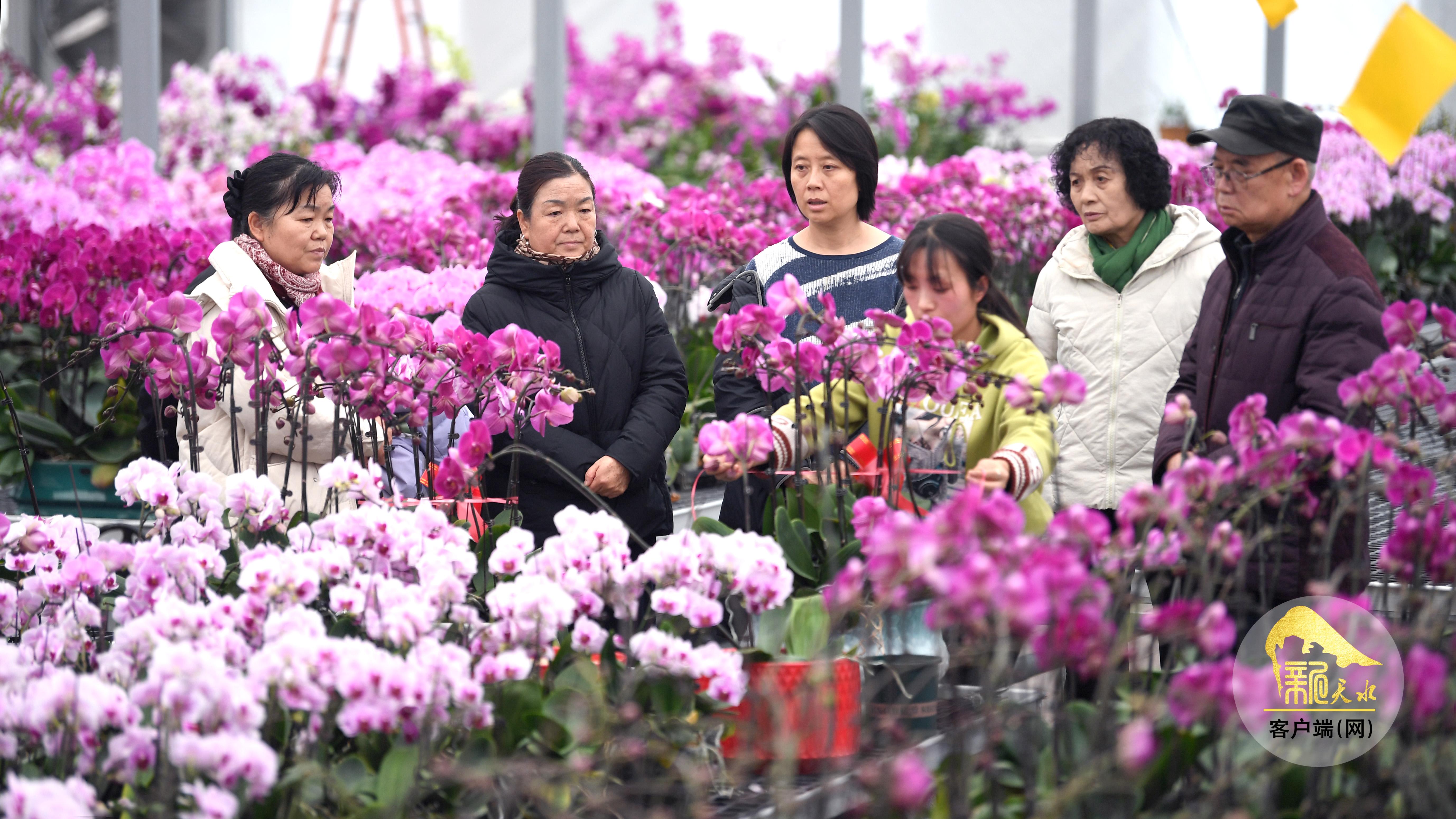 1月2日,市民在秦州区兰花产业园选购蝴蝶兰、石斛兰等花卉。
