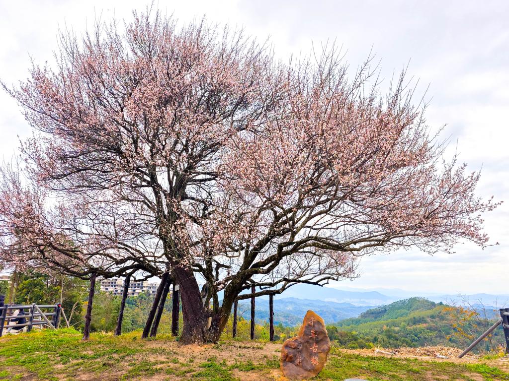 岭南无雪梅作雪。循着蜿蜒山路,踏过寻梅古道,在广东梅州市梅县区城东镇潮塘村,一株千年古梅已然盛放。它身姿挺拔,有三四层楼高,枝干虬曲苍劲,如凤凰振翅,点点粉嫩的花瓣恰似镶嵌其上的宝石。微风拂过,暗香涌动。