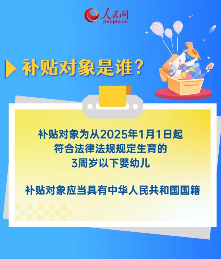 2025年7月,国家出台《育儿补贴制度实施方案》,明确规定为3周岁以下婴幼儿提供每孩每年3600元的补贴,切实减轻家庭育儿负担。根据工作安排,2026年育儿补贴于1月5日起全面开放申领。