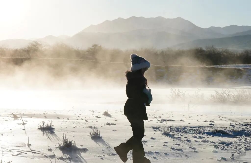 1月10日,在青海省海北藏族自治州祁连县,一名游客在观赏雾凇。新华社记者 齐芷玥 摄