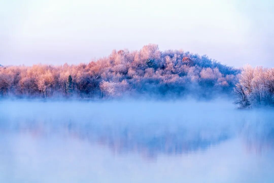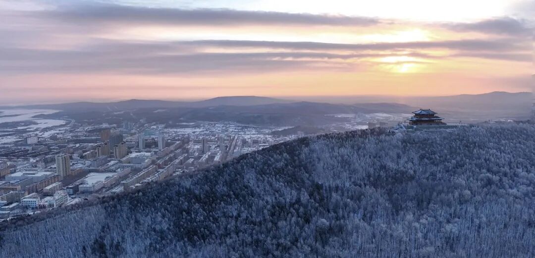 1月4日在黑龙江省抚远市东极阁拍摄的雾凇景观(无人机照片)。 新华社发(曲玉宝摄)