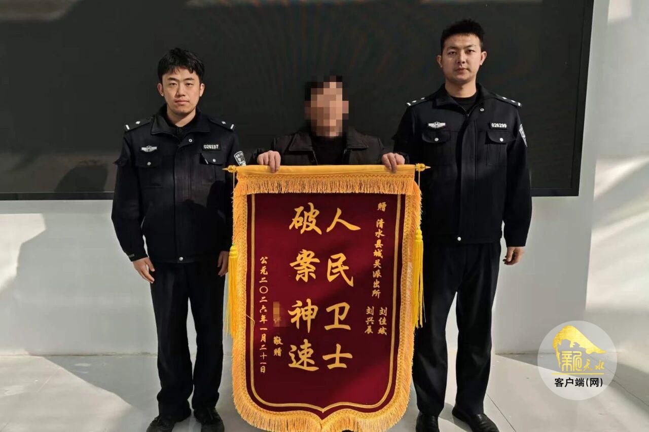 新天水讯【天水融媒记者 蔚军平】1月21日,清水县的梁先生来到清水县公安局城关派出所,将一面锦旗递到民警手中,对民警及时劝阻、帮助自己挽回经济损失2万余元表示由衷感谢。