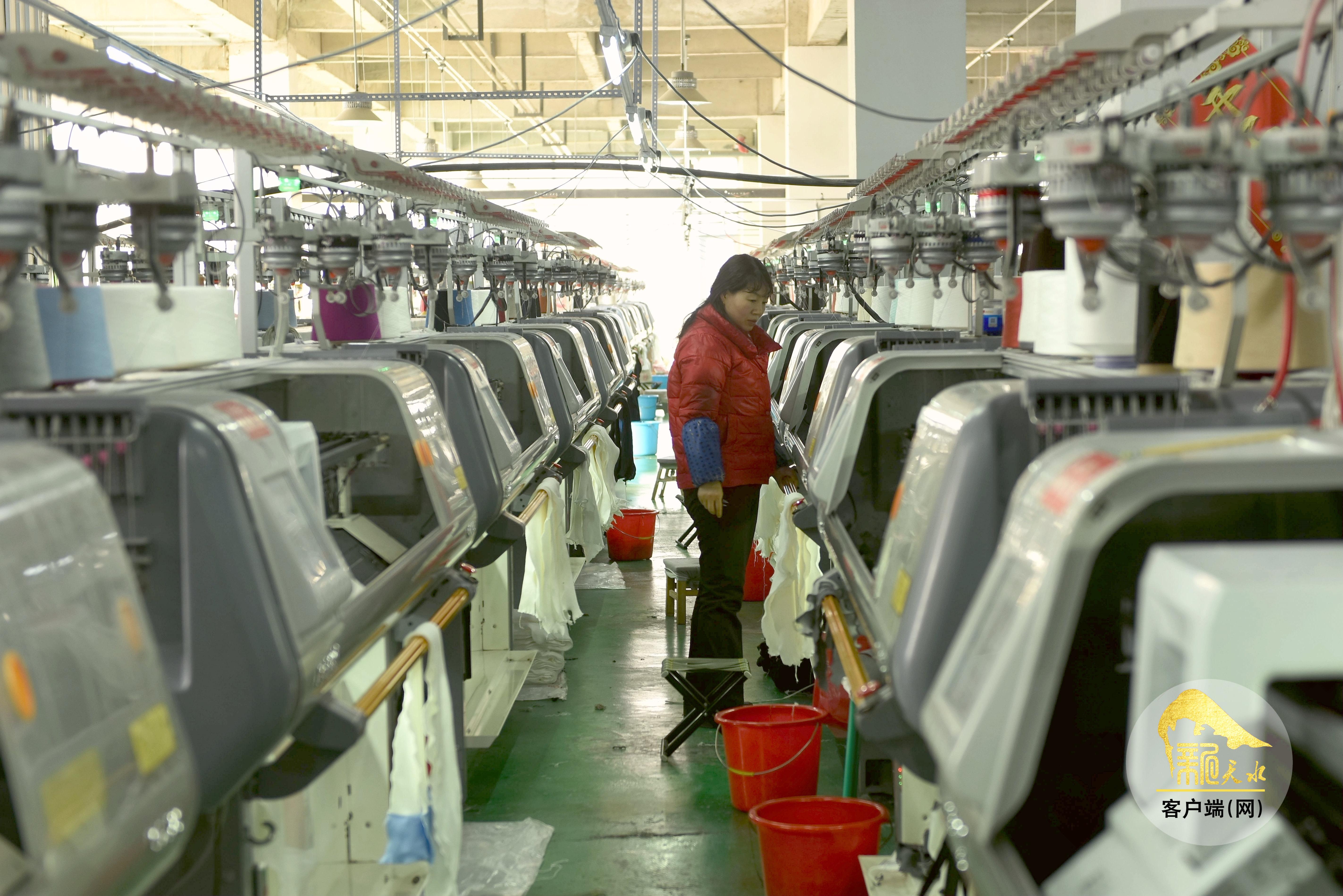 该工厂位于武山县工业集中区,是县重点招商引资项目,一期工程投资3000万元,于2023年8月建成投产,主营业务为纺纱加工、面料纺织加工、绣花加工、服装制造,产品主要销往欧美、俄罗斯等地区。2025年生产各类毛衣171万件,实现产值3160.8万元,完成税收504万元,带动260余人就业。(天水融媒记者 杨璟 罗双红 摄)
