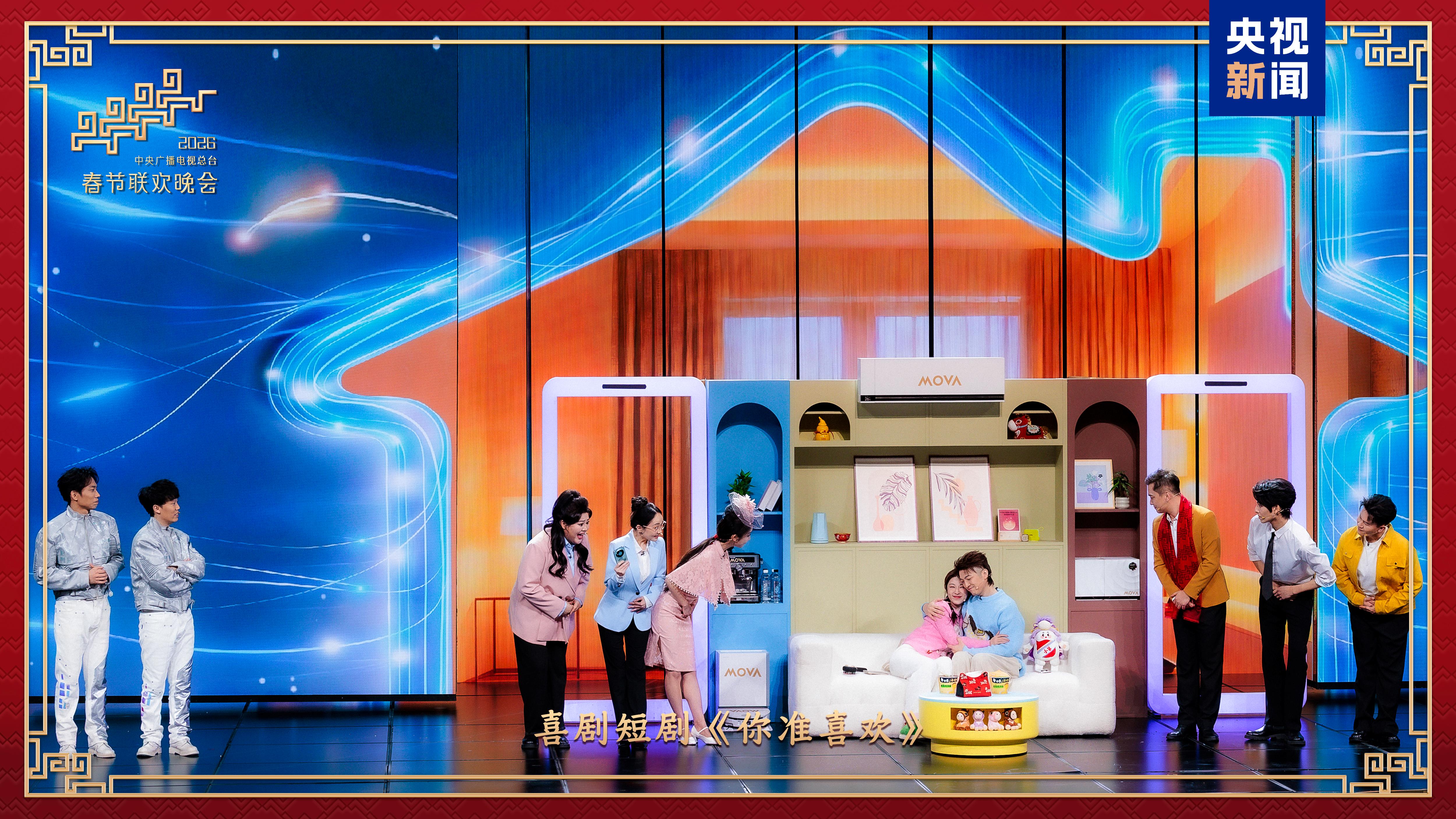 蔡明与王天放带来小品《奶奶的最爱》,聚焦机器人融入家庭生活场景,笑声与误会交织中藏着祖孙间最真挚的爱与惦念。喜剧短剧《你准喜欢》用轻松诙谐的方式演绎数字时代"越刷越上头"的状态,引发对社交媒体产品"有意思"和"有意义"的思考。