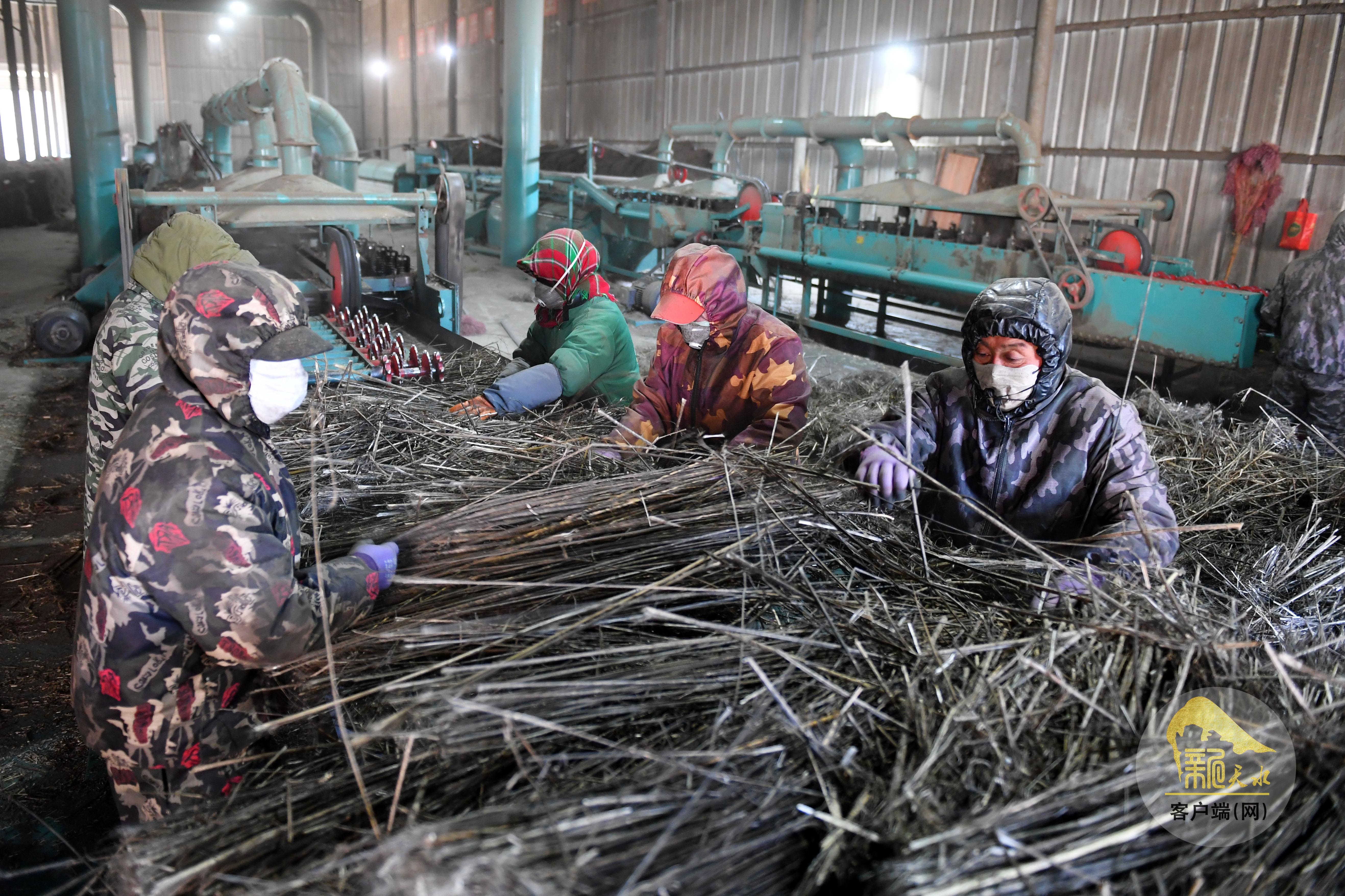 3月23日,清水县秦亭镇刘峡村汉麻加工厂正在有序生产。